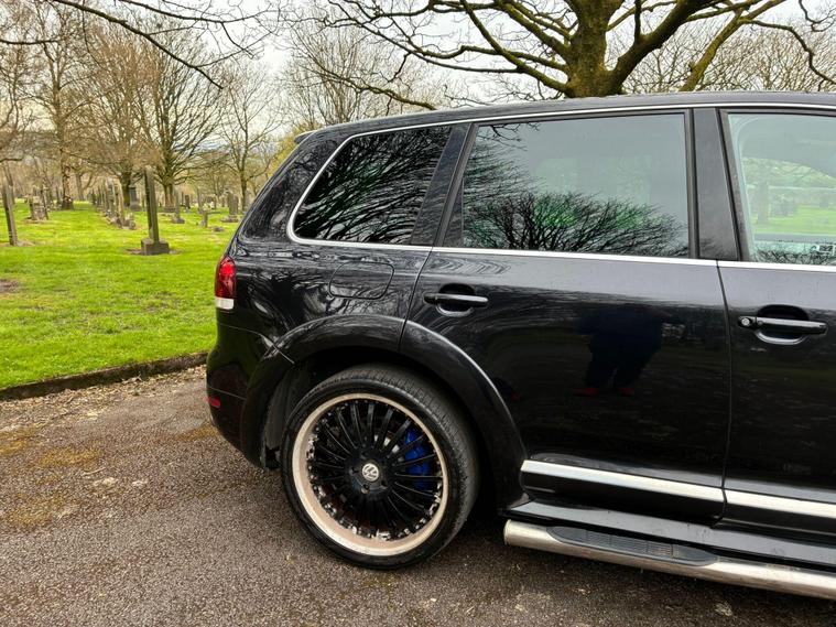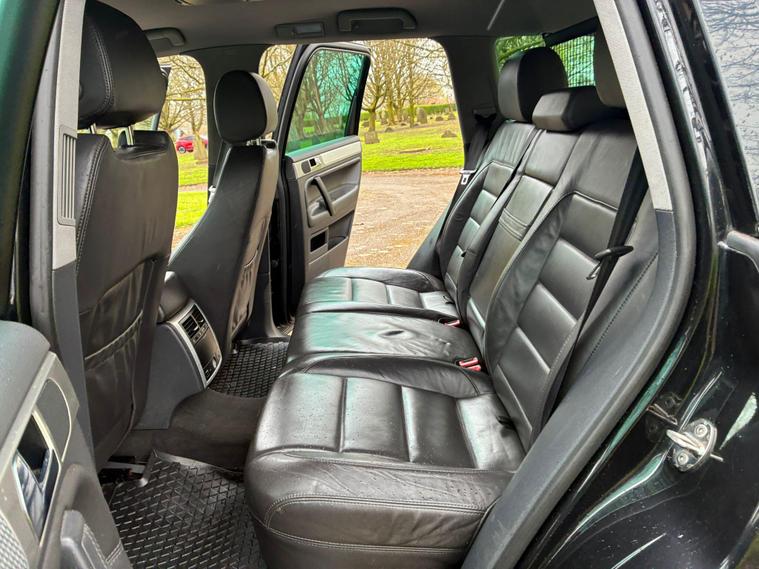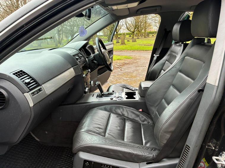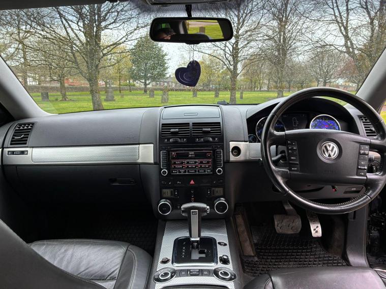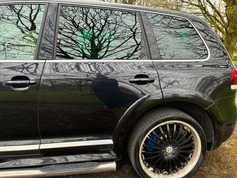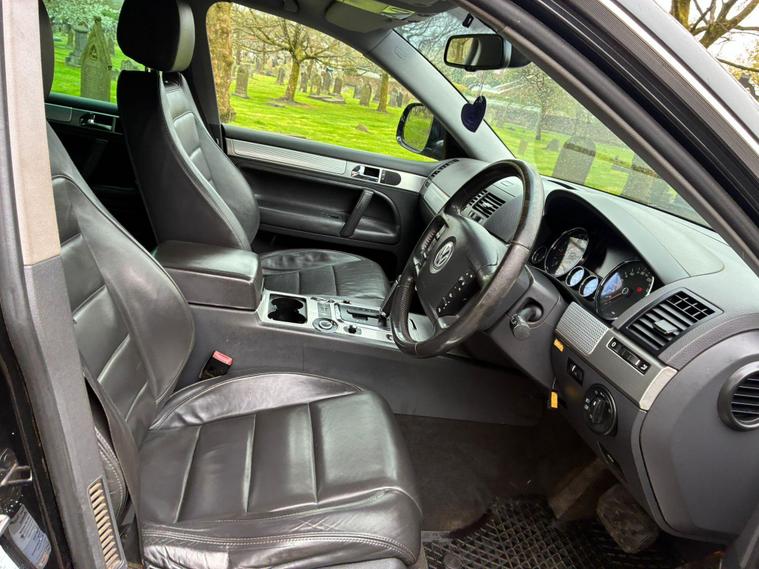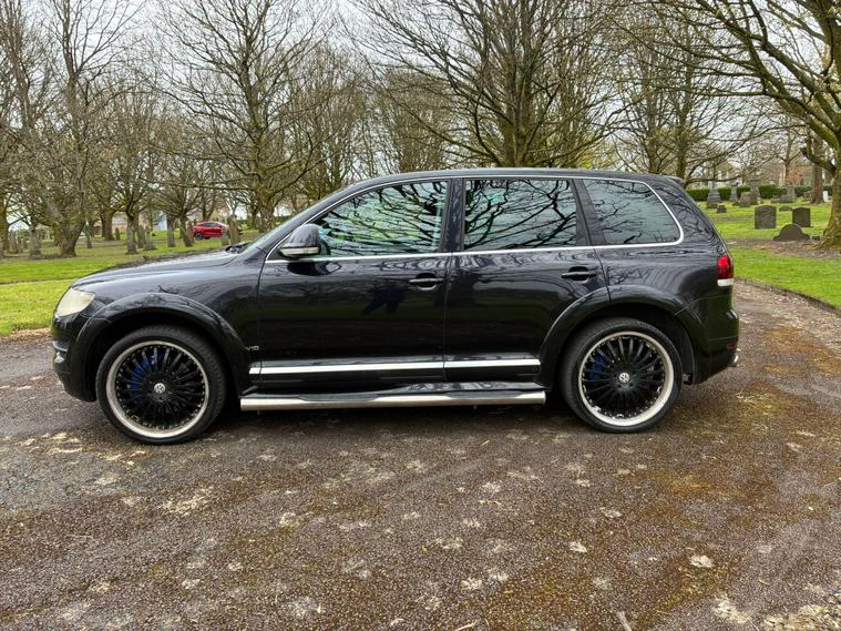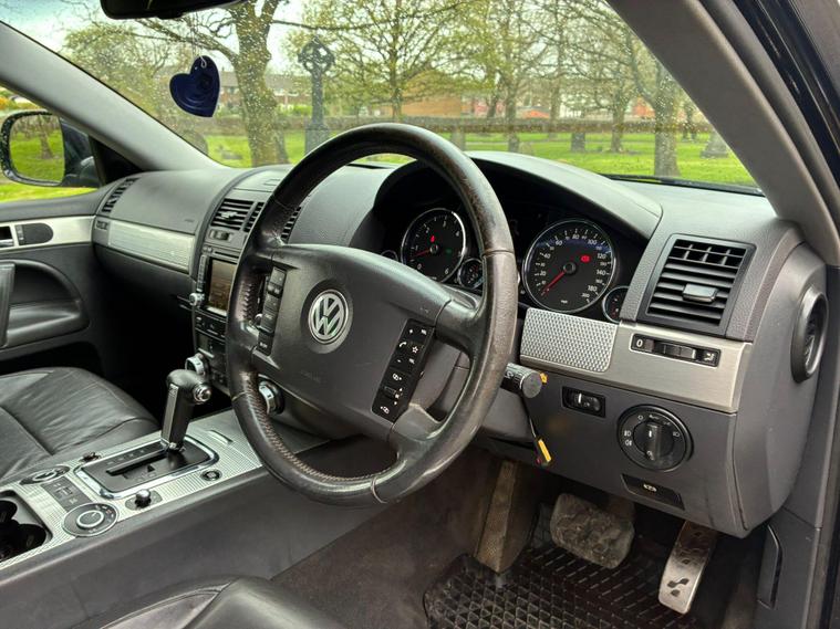 VOLKSWAGEN TOUAREG 5.0 TDI V10 DPF R50 IN A BLACK COLOUR EXTERIOR WITH CHROME EXTERIOR TRIMS WITH BLACK LEATHER INTERIOR WITH CHROME INTERIOR TRIMS... R50 EDITION... COMES WITH 12 MONTH MOT... SERVICE HISTORY... FEATURING ELECTRIC FRONT SEATS WITH MEMORY 3 CONTROLS... 2-WAY BOOT OPENING FEATURE... FRONT AND REAR HEATED SEATS... VOLKSWAGEN INDIVIDUAL AUDIO ROOF DVD PLAYER FOR REAR SEATS ENTERTAINMENT WITH A POP OUT SCREEN... MULTIFUNCTION STEERING WHEEL WITH RADIO AND CRUISTE CONTROL LIMITER... ELECTRIC HANDBRAKE... PUSH BUTTON START... FRONT AND REAR PARKING SENSORS... FOG LIGHTS... AUTO LIGHTS AND WIPERS... CD TOUCHSCREEN RADIO WITH BUILT IN NAVIGATION SYSTEM, BLUETOOTH CONNECTIVITY, CAR SETTINGS... DRIVE SUSPENSION MODES: AUTO/COMFORT/SPORTS... AUTO LEVEL CONTROLS... CLIMATE CONTROL WITH REAR HEATED WINDOWS WITH REAR SEATS CLIMATE CONTROLS... FUEL CAP RELEASE LEVER... BOOT OPENING SWITCH ON DRIVERS DOOR... DASH CENTER STORAGE COMPARTMENT... CENTRAL LOCKING DOOR CONTROLS... ALL ROUND ELECTRIC WINDOWS... ELECTRIC ADJUSTABLE SIDE HEATED AND FOLDING MIRRORS... CUP HOLDERS... ALLOY WHEELS WITH DECENT TREAD ALL ROUND... WARRANTY INCLUDED... ALL PART EXCHANGES ARE WELCOME... OPTIONAL NATIONWIDE DELIVERY EXTRA... BOOK-INS AND VIDEO VIEWINGS ARE AVAILABLE... TEST DRIVES ARE WELCOME... FOR MORE INFORMATION CALL US TODAY ON 01616232309..