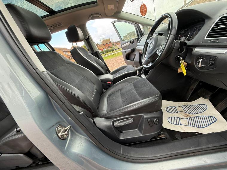 Boasting exceptionally low mileage for its age, this 2014 Volkswagen Sharan TDI SEL presents a superb ownership proposition. With only two previous owners and a comprehensive service history culminating in a recent service on 14th April 2026, this 2.0 litre diesel MPV has been meticulously maintained. Its MOT is valid until January 2027, and a clear vehicle history check confirms its excellent provenance. The Sharan TDI SEL offers seating for seven, making it ideal for families, and boasts a substantial towing weight of 2200 kg. Notable features include convenient electric rear sliding doors, a rear view camera with parking assistance, electric power latching for the manual rear sliding doors, and an advanced park assist system.Experience the practicality and comfort of this Volkswagen Sharan, further enhanced by its electric and sliding glass panoramic sunroof. The impressive 0-62mph acceleration in just 9.6 seconds demonstrates the responsive performance of the 2.0 litre diesel engine, a testament to its superior engineering compared to other vehicles in its class. This Sharan is offered with a 3 month warranty, providing peace of mind for its new owner.Nation wide delivery+ All around video available +Full service history+ New Service+ Long Mot+ Park assist+ 6 front sensors+ reverse camera+ 2 keys + panoramic sunroof + heated seats + electric sliding doors+ Visit Our Website Over 150 Cars In Stock + ALL DEALER FACILITIES AVAILABLE+FINANACE AVAILABLE+ ALL CARS SOLD WITH 12 MONTHS AA BREAKDOWN COVER AND EXTENDED WARRANTIES AVAILABLE. DRIVE AWAY INSURANCE ARRANGED (T&C Apply)..