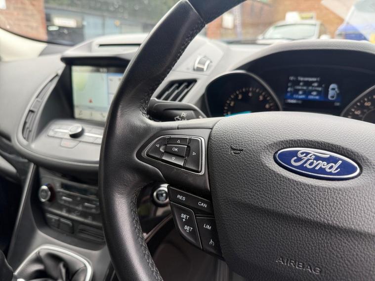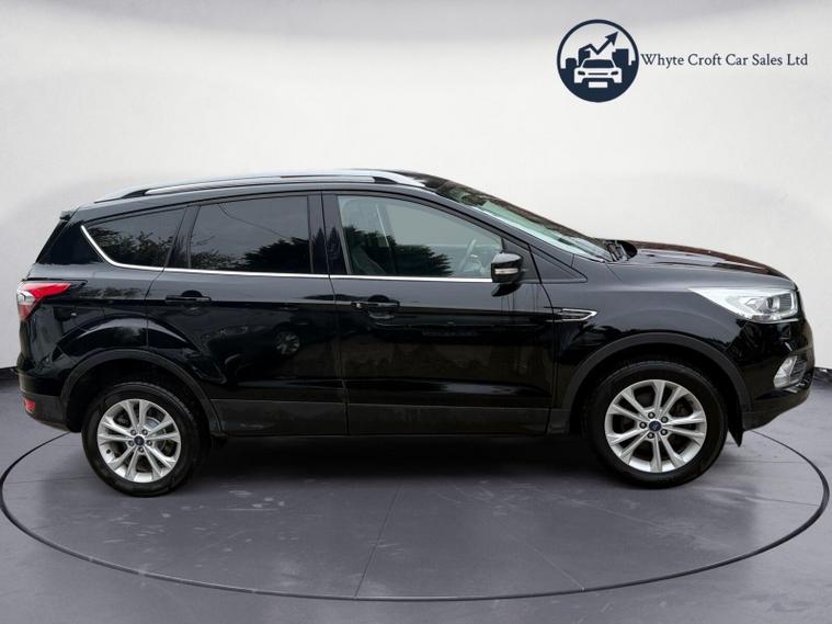 This 2018 Ford Kuga T Titanium offers excellent fuel economy, achieving up to 45 miles per gallon. This Euro 6 compliant 1.5 litre petrol model comes with a Titanium trim level, featuring a Ford DAB Navigation System with Ford SYNC3 and Bluetooth connectivity. You'll also benefit from DEATC Dual-Zone Electronic Automatic Temperature Control for personalised comfort, Keyless Entry and Opening for convenience, and Automatic Halogen Headlights with LED Daytime Running Lights.The Kuga Titanium is equipped with Rear Parking Sensors to assist with manoeuvring. These features collectively demonstrate how this Ford Kuga stands out from other vehicles in its class, offering a refined and practical driving experience..