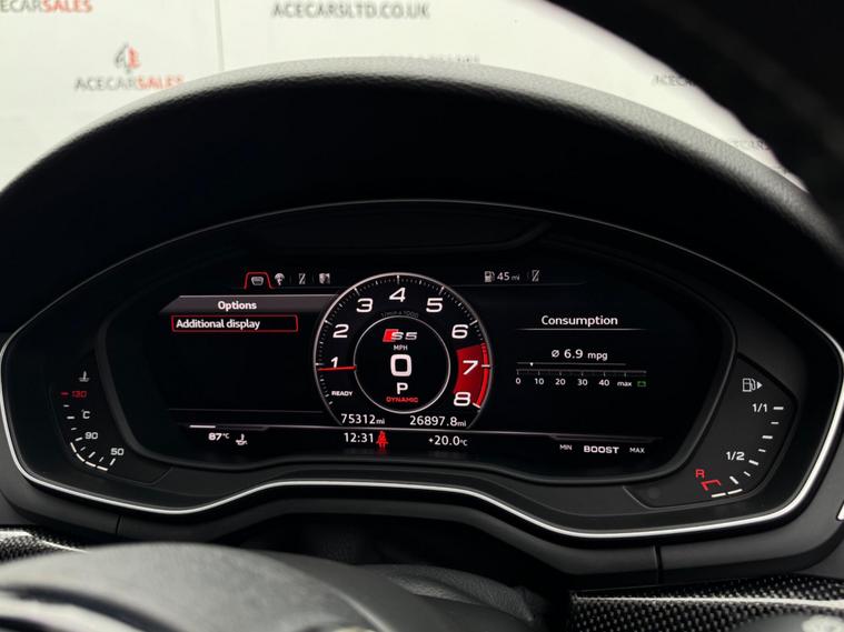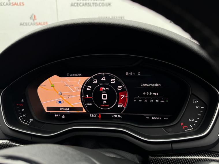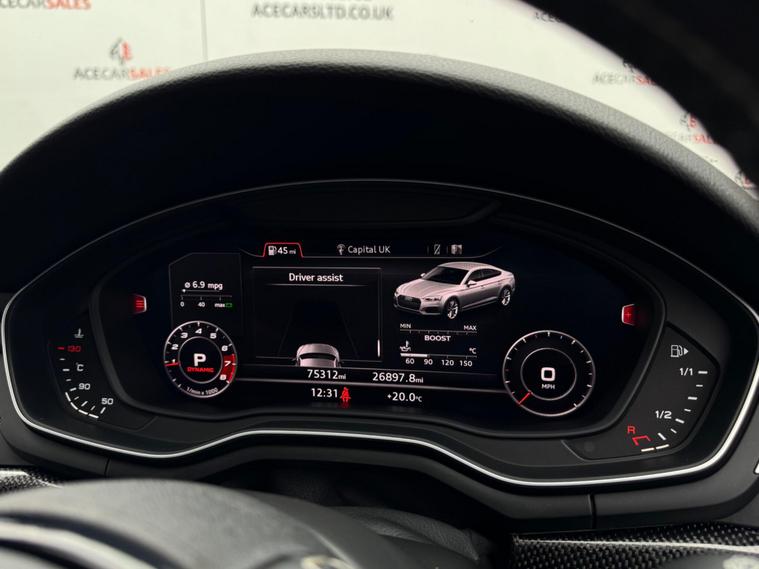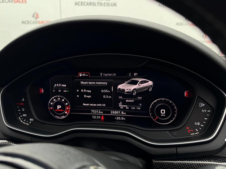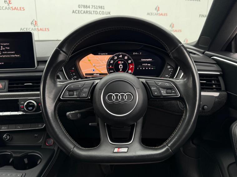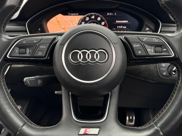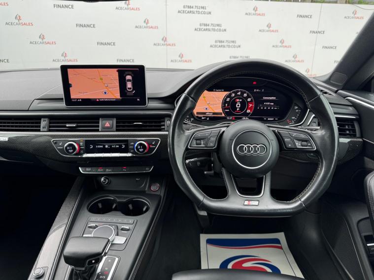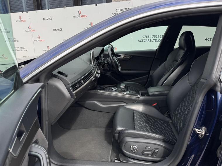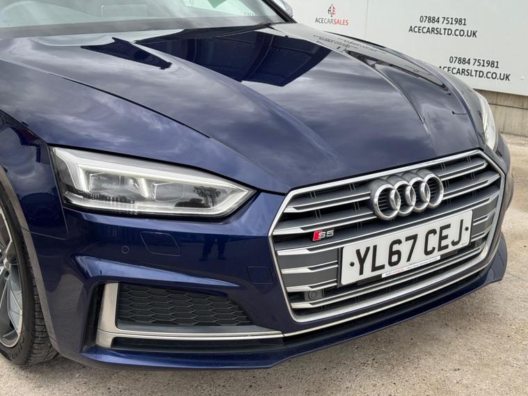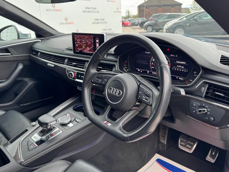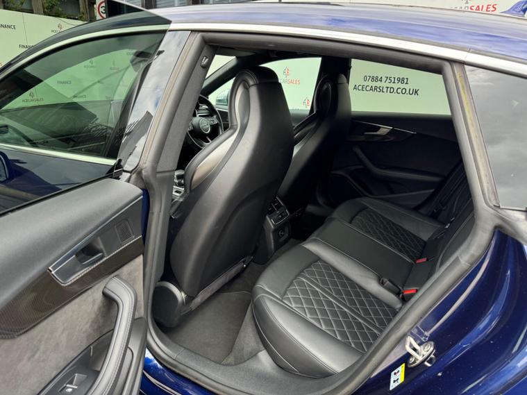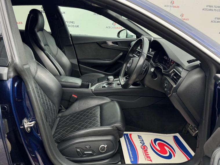 FINANCE & PCP AVAILABLE, COMPLEMENTARY WARRANTY INCLUDED, GOOD CONDITION, WE TAKE PART EXCHANGE! Audi S5 3.0 TFSI V6 Sportback Tiptronic quattro Euro 6 (s/s) 5dr. HPI Clear, Full Service History With Audi Services, 8 Months MOT, 3 Owners, 2 Keys, EURO6 ULEZ Compliant, Virtual Cockpit, Massage Front Seats, Extended Interior Lighting Package - Multi Coloured, Bang & Olufsen Sound System, Carbon Atlas Interior Inlays, Comfort&Sound Package, Cruise Control, Speed Limiting Function, Start/Stop Function, Parking Sensors, Audi Pre-Sense City, Multi Collision Brake Assist, Rest Recommendation System, Speed Warning Function, Efficiency Assist, Drive Select Modes Efficiency/Comfort/Auto/Dynamic/Individual With Optional Drive Settings, Paddle Shifts, Sport Gearbox Mode With Manual Shifting, QUATTRO, S Sport Suspension, S Model Enhanced Braking System, Electromechanical Power Steering, Electronic Differential Lock, Traction Control, Electronic Stabilisation Control, Electromechanical Parking Brake, Tyre Pressure Monitoring System, Automatic Headlights, LED Headlights, High-Beam Assist, LED Rear Lights and Dynamic Rear Indicators, LED Interior Light Pack, Electric Windows, Electric Mirrors, Powerfolding/Heated Mirrors, Electric Opening/Closing Boot, 4-Way Electric Lumbar Support, Electric Front Seats, Front Heated Seats, Automatic Dual Zone Climate Control, Air Conditioning, Front And Rear Screen Demisters, 7inch Colour Screen Media Interface, Virtual Cockpit S Instrument Dials - Changing Displays, Drivers Information Display, Audi Connect, Audi Smartphone Interface - Apple Carplay/Android Auto, Navigation, Traffic Information, Bluetooth, Radio, DAB, USB, Telephone Connection, Voice Control, Multifunctional Steering Wheel, Full Leather S Quilted Bucket Seats In Black, Quattro/S Design Interior Trims, Carbon Design Interior Trims, S Line Design Illuminated Door Sills, Privacy Glass, S5 Exterior Badging, S5 Design Exterior Trims, Aluminium Design Mirrors, 19inch Alloy Wheels.Be our next happy customer today! dealer's website