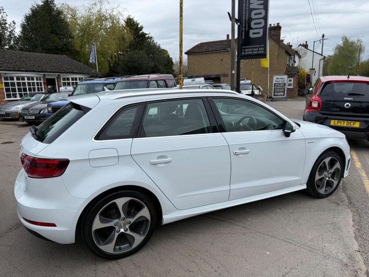 Allwood of Sandridge are pleased to be able to bring to market this lovely driving full service history A3 1.4 TFSI e-tron Sportback e-S Tronic edition. These incredibly popular cars are great to drive and benefits from a low road tax grouping and wonderful fuel economy. With a full Audi main dealer service record through till 35, 000 miles with 6 services and a cam belt and water pump change at 35, 000 in 2021. The vehicle then benefits from independent specialist servicing with the last one taking place recently at 60, 000 miles. For further peace of mind the cars MOT is running right through till 4 April 2027. Fully HPI clear free from accidents and finance and verification of the cars miles. The vehicle was pre registered by Audi and then owned by the same family. This e-tron benefit's from a lovely level of specification and includes highlights such as the wide screen entertainment system with Audi navigation system & DAB radio, parking sensors, leather multi functional sports steering wheel, paddle shift gear changers, automatic lights, heated electric mirrors, 18 inch five spoke sports alloys and much much more..