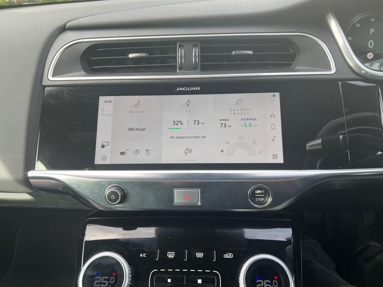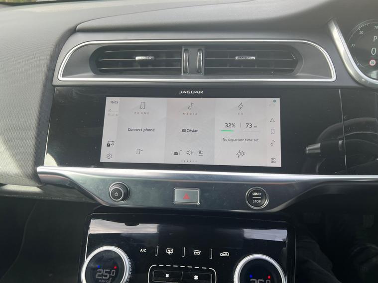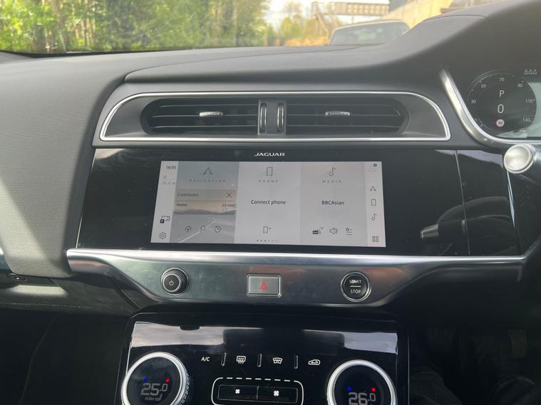 TWO KEYS, LONG MOT , EXCELLENT CONDITION INSIDE AND OUT BATTERY BEEN CERTIFIED, MASSIVE SPACE PANROOF FULL BLACK LEATHER ELECTRIC SEATS AMAZING COLOUR COMBINATION STILL UNDER MANUFACTURING WARRANTY This 2022 Jaguar I-PACE 400 Black is a superb example, having had only one owner since new. As an all electric vehicle with Four Wheel Drive, it offers a sophisticated driving experience. The I-PACE boasts a substantial 90 kWh battery, providing a maximum range of 278 miles when new. Charging is convenient, with a full charge at home using a 7kW charger taking approximately 12 hours and 36 minutes, while rapid public charging can replenish the battery from empty to 80% in just 50 minutes. Notable features include Adaptive Cruise Control with Steering Assist, 2 Zone Climate Control, Apple CarPlay integration, a Rear Camera for easier parking, and a Fixed Panoramic Roof to enhance the cabin's sense of space.The performance of this I-PACE is truly impressive, with an acceleration of 0-60mph achieved in a swift 4.5 seconds, demonstrating its dynamic capabilities. These highlights, combined with its generous boot space, set this Jaguar I-PACE apart from other vehicles in its class, offering a compelling blend of electric performance, advanced technology, and practicality for everyday use. PX WELL COME. FINANCE AVAILABLE. DELIVERY AVAILABLE.