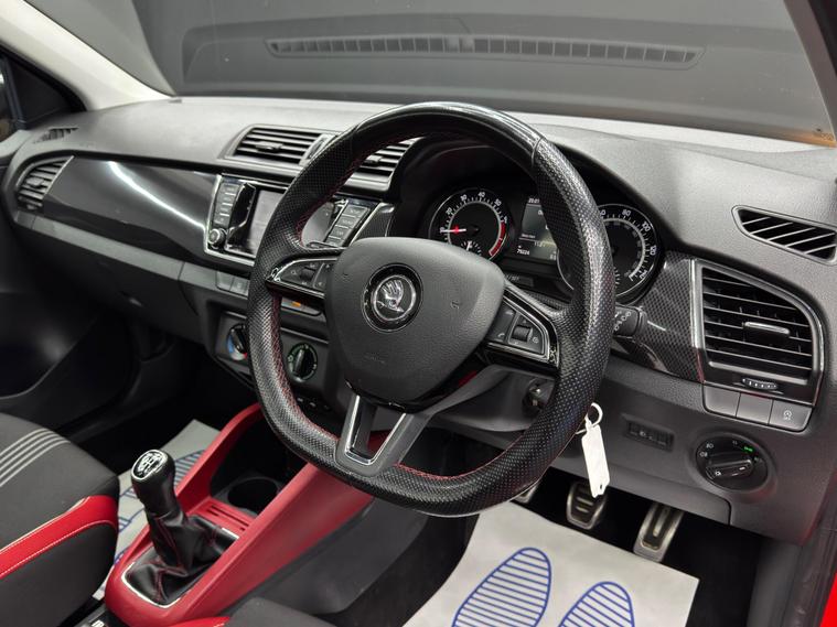 Here at Motor Gurus we are delighted to offer a Skoda Fabia 1.2 TSI Monte Carlo. This vehicle is in very good condition when taking into consideration the vehicle's age and mileage. This specific vehicle is finished in a GLOSS RED and is matched with a RED CLOTH interior. This vehicle comes included with: REAR PARKING SENSORS, PRIVACY GLASS, FIXED GLASS ROOF, HEATED SIDE MIRRORS, PERFORATED GRIPPED LEATHER STEERING WHEEL, TWIN CUPHOLDERS, CLIMATE CONTROL, DAB RADIO, BLUETOOTH AUDIO, TELEPHONE CONNECTIVITY, APPLE CARPLAY, TYRE PRESSURE MONITORING AND MUCH MORE! Our Skoda Fabia 1.2 TSI Monte Carlo has come to us with SERVICE HISTORY, is a 1 FORMER KEEPER (2 owners) FROM NEW and is ONLY £20 TAX! We will also provide a 12 MONTH MOT and a FRESH OIL SERVICE before it leaves our premises (OTR)..