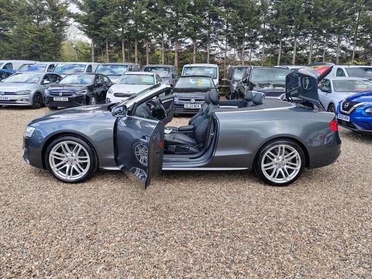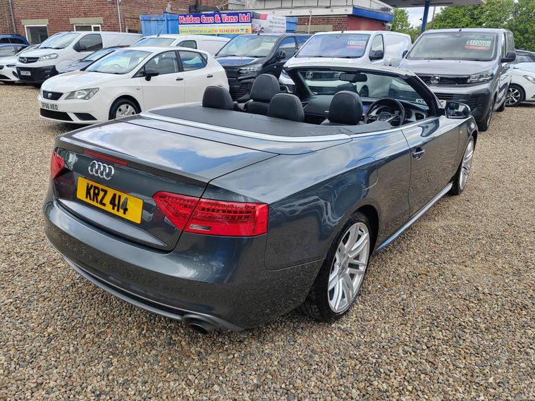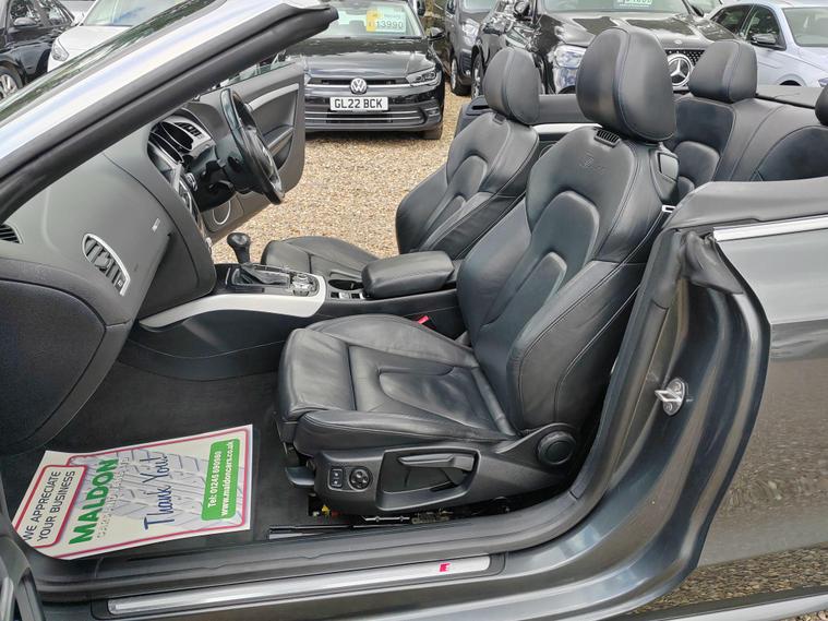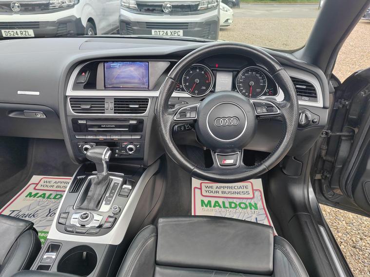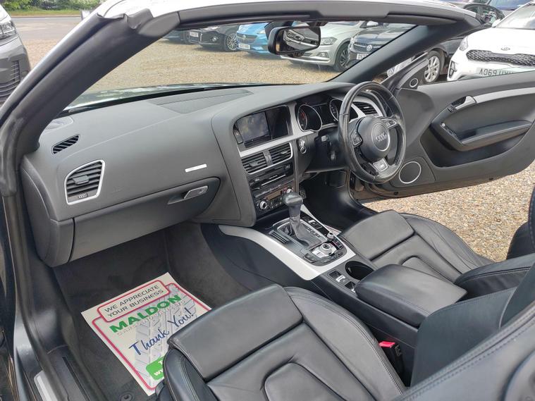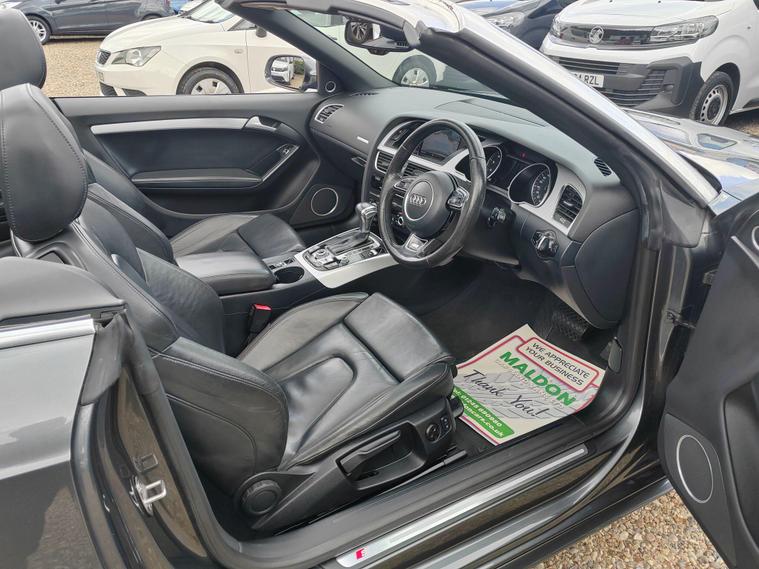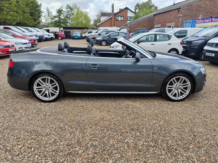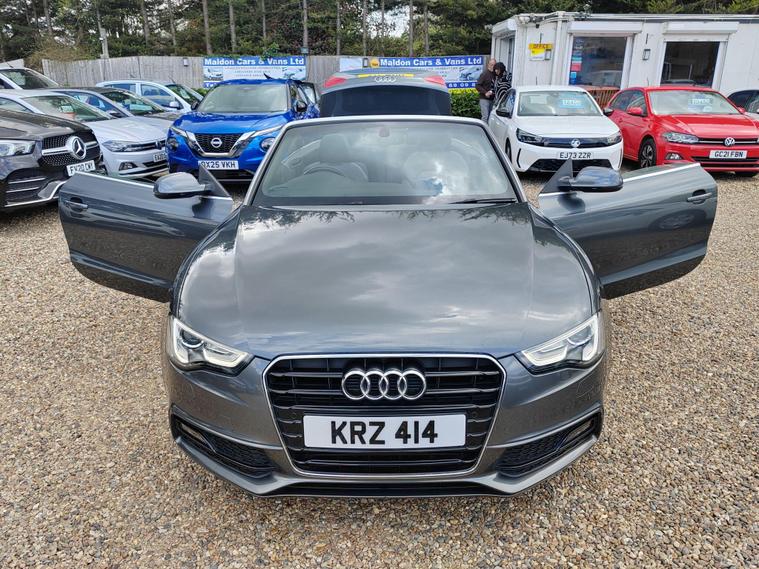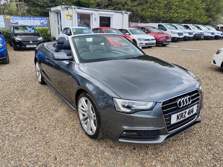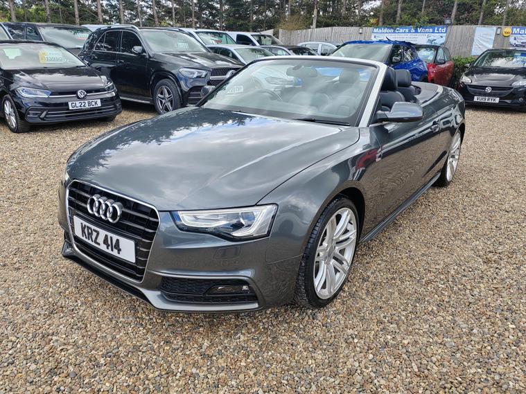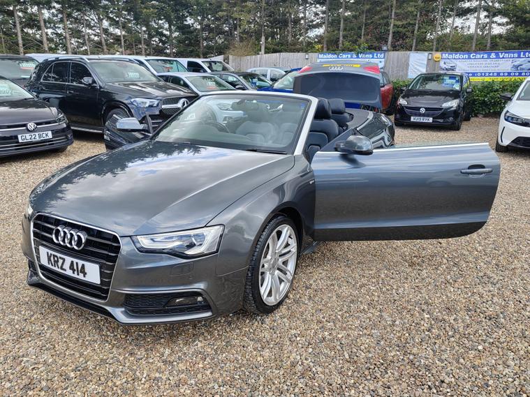 Serviced at 7k miles, 13k miles, 18k miles, 30k miles, 33k miles, 45k miles, Private plate included, This 2015 Audi A5 Cabriolet TFSI S line Special Edition stands out with its exceptionally low mileage of just 45, 900 miles, a remarkable figure for its age, and has been cared for by only two owners. This Euro 6 compliant model boasts a 1.8 litre petrol engine and comes with a clear vehicle history check, offering peace of mind. Inside, you'll find a premium experience with the Bang and Olufsen sound system and the convenience of Audi Parking System Plus, which includes both front and rear parking sensors and parking assistance. The headlights automatically adjust thanks to the light sensor, ensuring optimal visibility.This A5 Cabriolet offers several advantages that set it apart. Its impressive fuel economy of 46 mpg means fewer trips to the petrol station, while its low CO2 emissions are beneficial for the environment. The vehicle also falls into a low insurance group, potentially saving you money on running costs. Furthermore, you'll appreciate the generous boot space, making it practical for everyday use and weekend getaways alike.12 MONTHS AA BREAKDOWN COVER, EXPERIAN AUTOCHECK CLEAR, ALL PREV MOTs AVAIL We are located in OAK CORNER, MALDON ROAD, Maldon, Essex post code CM9 6TF Open 7 days a week, All major credit/debit cards accepted for deposits only, Finance available, Please visit our website dealer's website to view our latest stock, Part Exchange Welcome - Test Drives Welcome - We Offer a Transparent, Friendly, 'NO PRESSURE' Service , Read Our Reviews, All our vehicles come with 6 months nationwide parts and labour warranty, MALDON CARS AND VANS LTD are authorised and regulated by the Financial Conduct Authority under FRN Reference number 927720. Finance is Subject to status. MALDON CARS AND VANS LTD is authorised as a CREDIT BROKER and NOT A LENDER. This means we work with a number of carefully selected credit providers who may be able to offer you finance for your purchase.