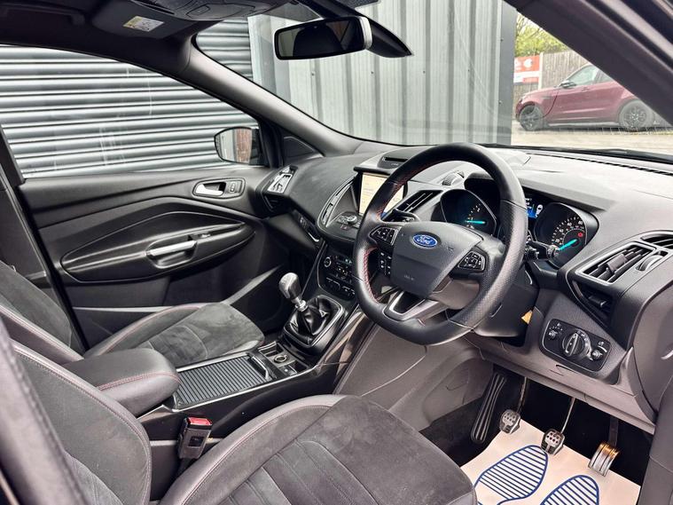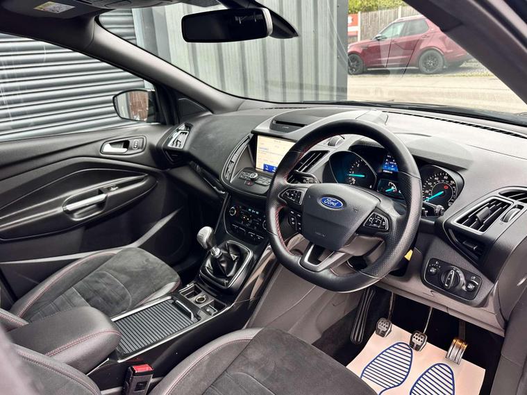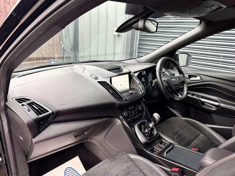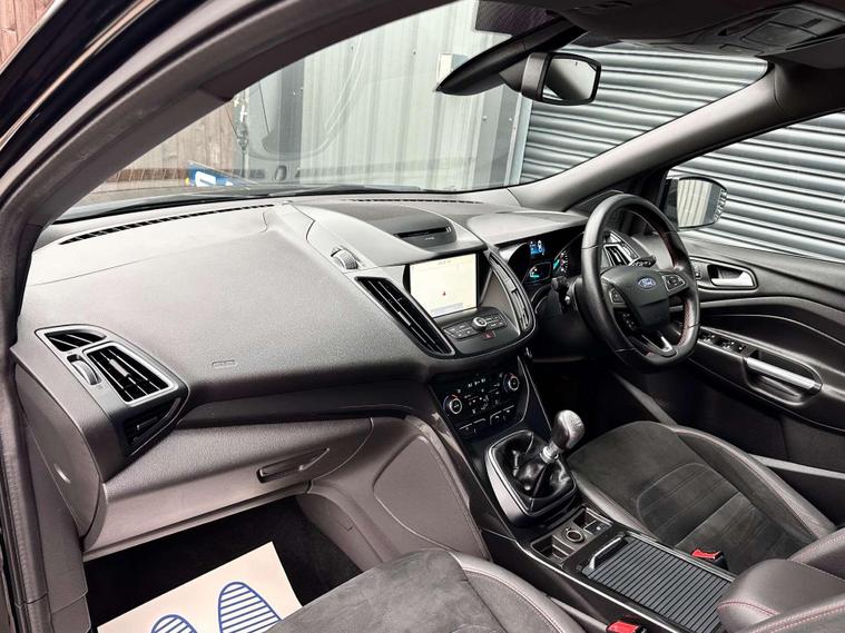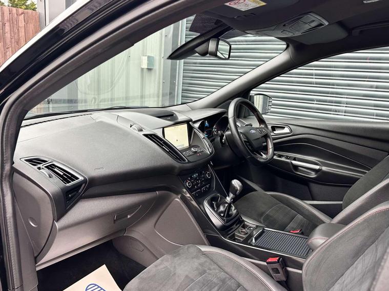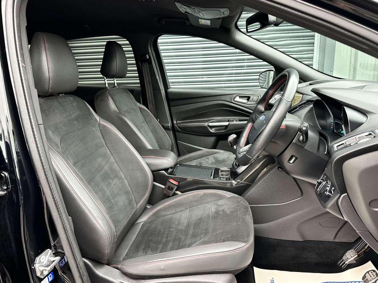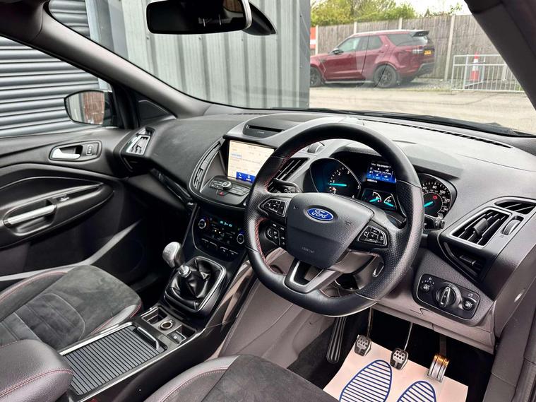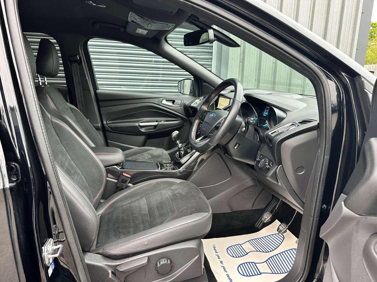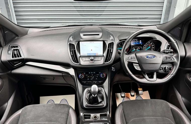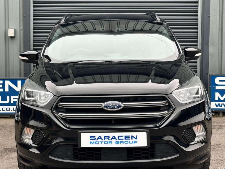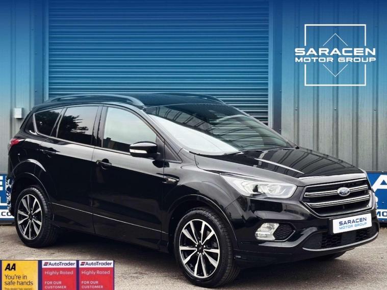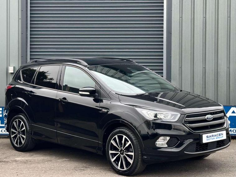 Ford Kuga 1.5 TDCi ST-Line SUV 5dr Diesel Manual Euro 6 ULEZ free, Finished in metallic black with Ebony alcantra leather with a red contrast stitching.18'' Diamond cut alloy wheels, Ford SYNC3, Satellite navigation, Apple CarPlay/ Android Auto premium Ford DAB, 8'' touchscreen, cruise control with speed limiter, enhanced active park assist, electric power folding door mirrors, one touch windows, quick clear front windscreen with heated washer jets, Bi-Xenon headlights, LED DRL's, dual zone climate control, handsfree tailgate, Ebony leather wrapped steering wheel, hill start assist, space saver spare wheel.Here at Saracen Motor Group we have been awarded AA Platinum Dealership Recognition along with being nominated for best customer service by Autotrader for 2021, 2022, 2023, 2024 & 2025. We are a 5-star dealership with over 600 5-star reviews across all internet platforms including Autotrader and have been regarded as one of the best dealerships to buy from in the UK.Our preparation team inspects each vehicle to the highest level possible for it’s age and mileage. You can rest assured your next car has been cared for to the highest standard. Service history, V5 and the HPI certificate will all be present on viewing and collection. At our site based in Battlesbridge, Essex you can enjoy a haggle-free buying experience where you can drive away the same day if prior arranged. Additional £199 admin fee applies, Please see our website for details..