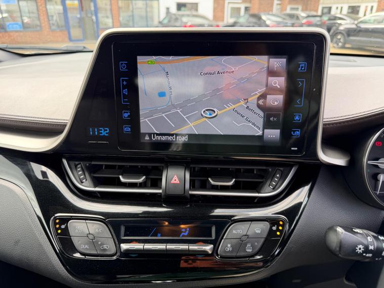 This 2017 Toyota C-HR VVT-h Excel is a remarkable find, having been owned by just one careful owner from new. This stylish hybrid crossover boasts a 1.8L petrol hybrid engine, meeting Euro 6 emissions standards. It comes equipped with the desirable Accent Pack in Havanna Brown, enhancing its distinctive look. Inside, you'll appreciate the convenience of auto headlights and dual zone automatic air conditioning, ensuring a comfortable cabin environment. The advanced Toyota Safety Sense suite includes adaptive cruise control, providing a more relaxed driving experience. Both the driver and front passenger seats are heated, adding an extra touch of comfort.The highlights of this Toyota C-HR truly set it apart. With an impressive fuel economy of 72 mpg, it offers exceptional efficiency compared to many other vehicles in its class. Furthermore, its low insurance group rating means more affordable ownership, and its low CO2 emissions contribute to a more environmentally friendly drive. This combination of excellent economy, affordability, and advanced features makes this C-HR a compelling choice..