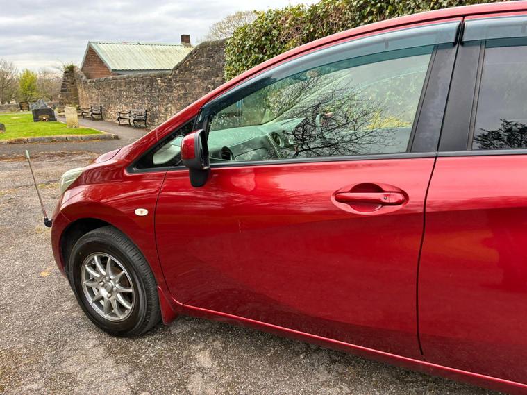 NISSAN NOTE 1.2 DIG-S TEKNA IN A RED EXTERIOR COLOUR WITH BLACK CLOTH INTERIOR WITH BLUE STITCHING... IMPORTED FROM JAPAN... VERY CLEAN INSIDE AND OUT... WILL COME WITH 12 MONTHS MOT... 0 PREVIOUS OWNERS... YOU CAN BE THE VERY 1ST OWNER OF THIS VEHICLE IN THE UK... FEATURING KEYLESS ENTRY AND START... REVERSE CAMERA... AUTO STOP/START... PRIVACY GLASS... WIND REFLECTORS... TOUCHSCREEN RADIO WITH AN AUX PORT... CLIMATE CONTROL WITH REAR HEATED WINDOWS... ELECTRIC ADJUSTABLE SIDE FOLDING MIRRORS... HEADLIGHT ADJUSTMENT CONTROL... ALL ROUND ELECTRIC WINDOWS... CENTRAL LOCKING DOOR CONTROLS... CUP HOLDERS... ALLOY WHEELS WITH DECENT TREAD ALL ROUND... WARRANTY INCLUDED... ALL PART EXCHANGES ARE WELCOME... OPTIONAL NATIONWIDE DELIVERY EXTRA... BOOK-INS AND VIDEO VIEWINGS ARE AVAILABLE... TEST DRIVES ARE WELCOME... FOR MORE INFORMATION CALL US TODAY ON 01616232309..