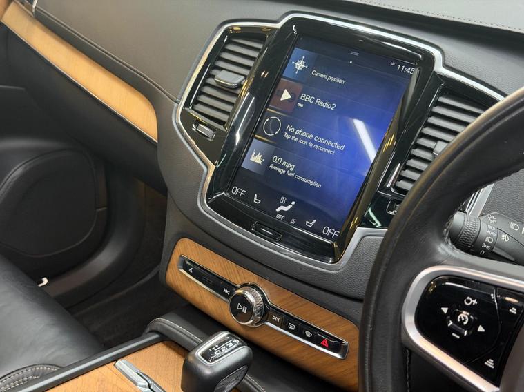 This 2019 Volvo XC90 T5 Inscription is presented with a clear vehicle history check, offering you peace of mind. This seven seat, four wheel drive SUV is powered by a 2.0 litre petrol engine and meets Euro 6 emissions standards. It boasts a generous towing weight of 2400 kg. Notable features include a power glass tilt and slide panoramic sunroof with sun curtain, a winter pack with head up display and heated steering wheel, and a Bluetooth handsfree system for seamless connectivity.The XC90 T5 Inscription accelerates from 0 to 60 miles per hour in just 7.5 seconds, demonstrating its responsive performance. This acceleration figure indicates a more dynamic driving experience compared to other vehicles in its class. Further enhancing your comfort and convenience are adaptive cruise control for effortless long journeys and a power driver's seat with lumbar support and memory settings for both the seat and exterior mirrors, ensuring a personalised driving position every time you get behind the wheel..