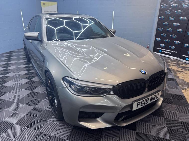 BMW M5 4.4 V8 Steptronic xDrive Euro 6 (s/s) 4dr2018 (18) | 55, 000 miles | Petrol | Automatic | Grey | 2 Owners | ✅ ULEZ CompliantA high-performance BMW M5, finished in Grey and powered by the legendary 4.4 V8 twin-turbo engine, paired with a Steptronic automatic gearbox and xDrive all-wheel drive system, delivering outstanding performance with everyday usability.Producing around 600 bhp, this M5 offers incredible acceleration while maintaining comfort and refinement.✅ Key Features:• 4.4 V8 Twin-Turbo Engine – approx. 600 bhp• Steptronic Automatic Gearbox• xDrive All-Wheel Drive• M Performance Specification• Satellite Navigation• Digital Driver Display• 360° Camera• Front & Rear Parking Sensors• Adaptive Cruise Control• Heated Seats• Premium Sound System• Dual Zone Climate Control• Paddle Shift Steering Wheel• Keyless Entry & Start• Alloy Wheels• Multi-Function Steering Wheel• Finished in Grey – aggressive and premium look• 2 Owners? Super saloon performance with everyday comfort – serious car.? Finance Available | Part Exchange Welcome | Extended Warranty Options? Viewings & test drives welcome.
