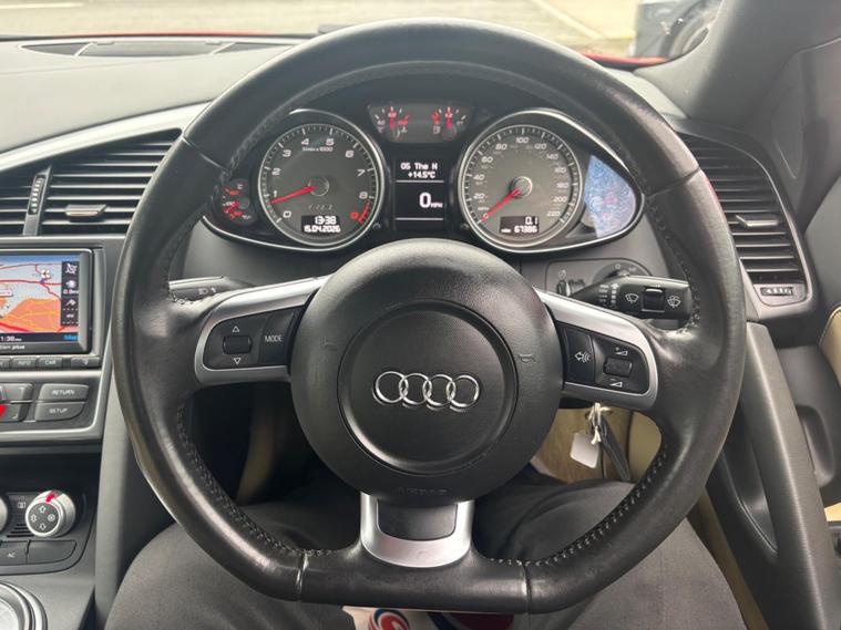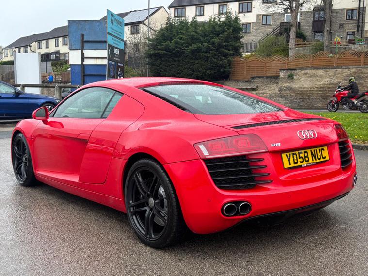 The Purist’s Specification | Single Ownership Since NewWe are pleased to offer this highly desirable high specification truly rare and unique example of the legendary Audi R8. This 2008 (58) 4.2 FSI V8 is finished in striking Brilliant Red with matching side blades and a luxurious Luxor Beige Fine Nappa Leather interior. A standout feature of this vehicle is its stance; the 19'' forged 5 twin spoke alloy wheels are fitted with Pirelli P Zero tyres all round, ensuring the legendary Quattro grip is perfectly maintained.This vehicle is in exceptional condition inside and out, reflecting the care of its sole keeper. Finding a first-generation R8 is difficult; finding one with just one owner from new is almost unheard of. This is the definitive ''analogue'' supercar, featuring the highly sought-after 6-speed gated manual transmission—a masterpiece of tactile engineering that connects the driver to the 420PS V8.Impeccable Maintenance & ProvenanceThis R8 has been cherished by a single keeper for 16 years and maintained with clinical precision.Service History: 10 Service Stamps in total.Specialist Care: Initial service by Audi, followed by nine meticulous services at the renowned German Autocare of Pudsey.Service Intervals (Miles): 9, 256 | 18, 768 | 25, 957 | 38, 207 | 46, 676 | 52, 233 | 56, 978 | 60, 813 | 64, 871 | 67, 149.Documentation: Includes a full portfolio of invoices and receipts, 2 x keys, and the full original handbook pack.Recent Maintenance: Just fitted with brand new brakes all round.High Factory SpecificationDrivetrain: 4.2L V8 FSI | 6-Speed Manual | Quattro AWD | 90L Fuel Tank.Lighting: Xenon Plus Headlights with LED Daytime Running Lights.Interior: Fine Nappa Leather Sports Seats | Electric Lumbar Support | Navigation System Plus with MMI Logic | Aluminum Gear Knob | Leather Package.Tech: Audi Parking System | 7-Speaker 140W Sound System | Driver Info System.About UsWe have been established in Baildon for over 20 years. All our vehicles are fully inspected, prepared and valeted. We are finance specialists. Part exchange is welcome..