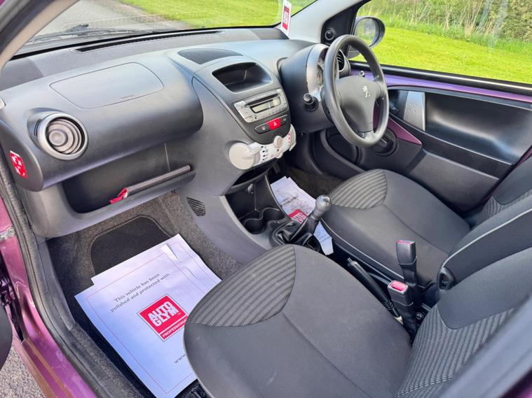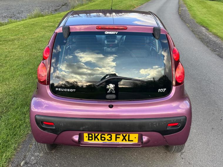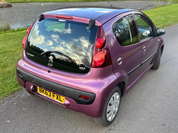 We are pleased to be presenting this 2013 (63) Peugeot 107 1.0 12V Active Euro 5 5dr, finished in purple and having covered 38, 000 miles from new. This example has had 3 owners.It comes with an excellent maintenance record, showing 9 services from new including our pre-sale service.Running costs are exceptionally low with ULEZ compliance, £20 annual road tax, insurance group 3E, and over 60 MPG combined.Being the Active model, it comes equipped with air conditioning, electric front windows, remote central locking, power steering, and a CD/radio with AUX input.The Peugeot 107 is well known for its low running costs, simple maintenance and compact size, making it an ideal first car, city car or economical daily driver.As with all our vehicles, this Peugeot has been treated to a multi-stage valet using the best products Auto Glym have to offer. Every car we handle receives, at minimum, a service as part of our pre-sale preparation. Supplied with 12 months MOT without advisory, our complimentary 3-month warranty, 12 months free AA breakdown cover, and 2 keys.Please do not hesitate to get in touch via Text, Call or Email at any time to arrange a viewing and test drive. Viewing available by appointment only. To find out more about us, head to dealer's website Whilst every effort has been made to ensure the accuracy of the above information, sometimes errors may occur — please check with a salesperson..