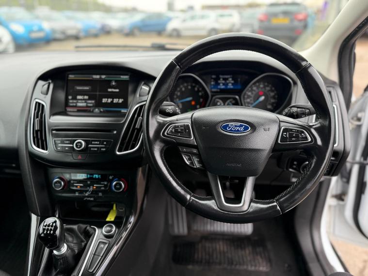 2015 Ford Focus 1.0T EcoBoost Titanium Euro 6 (s/s) 5dr – a well-equipped, efficient and comfortable hatchback that’s perfect for everyday driving with low running costs and a premium feel.This example comes with remote central locking with push button start and sits on 16” alloy wheels, giving it a clean and modern look. It also benefits from rear parking sensors, automatic headlights, and rain-sensing wipers, making driving effortless in all conditions.Inside, the car offers a high level of comfort and technology, featuring a multifunction leather steering wheel with audio controls and voice command, along with an 8” touchscreen infotainment system including DAB radio, satellite navigation, Bluetooth hands-free and media connectivity, plus USB input and a 12V power dealer's website is a strong point with dual zone climate control, air conditioning, front and rear electric windows, heated electric mirrors, and an auto-dimming rear view mirror, along with front and rear heated windscreens, ideal for year-round usability.On the road, it’s smooth and efficient, equipped with EBA (Emergency Brake Assist) and Hill Start Assist, providing added confidence and safety.Practicality is covered with ISOFIX child seat attachments, making it a great choice for families.This vehicle comes with full service history, including a brand-new service just completed, offering excellent peace of mind.A well-maintained, high-spec Focus Titanium that’s ready to drive away today..