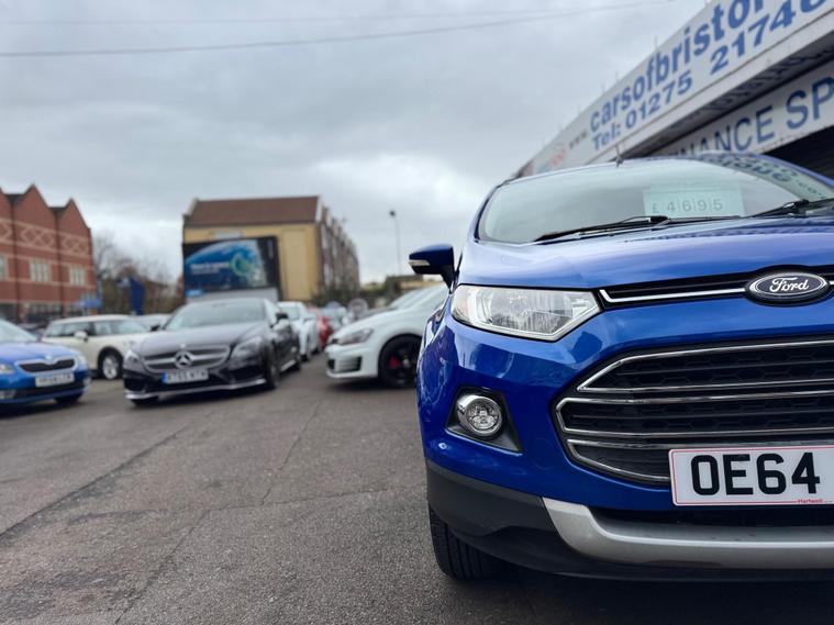 HERE WE HAVE ON SALE IS THE LOVELY FORD ECOSPORT 1.5 TDCI TITANIUM 2WD FINISHED IN METALLIC dealer's website WITH AUX AND USB CONNECTION, ELECTRIC WINDOWS, ELECTRIC MIRRORS, MULTIFUNCTIONAL STEERING WHEEL, ALLOY WHEELS, REMOTE CENTRAL LOCKING AND X2 KEYS.......................THIS VEHICLE BOASTS FULL SERVICE HISTORY CONSISTING 24 MILES, 9934 MILES, 15593 MILES, 25815 MILES, 44846 MILES, 52819 MILES, 62225 MILES, 86552 MILES AND 87382 MILES MEANING THIS VEHICLE HAS BEEN MAINTAINED TO A VERY HIGH STANDARD....................THIS VEHICLE IS IN EXCELLENT CONDITION AND DRIVES LIKEWISE........................CALL OUR SALES TEAM ON 01275242671 TO BOOK A TEST DRIVE...........................FINANCE AVAILABLE ON REQUEST.