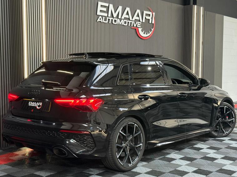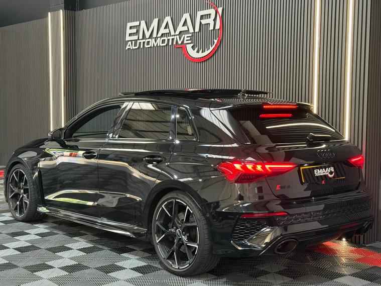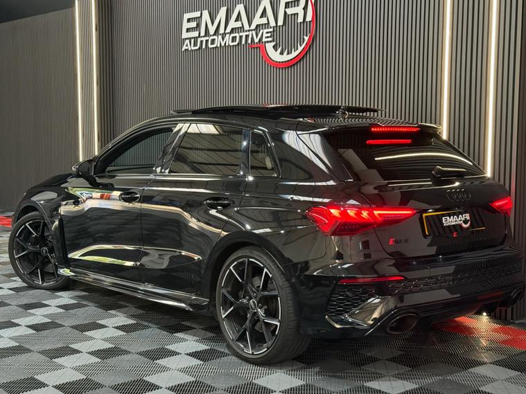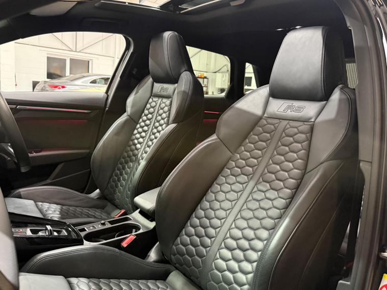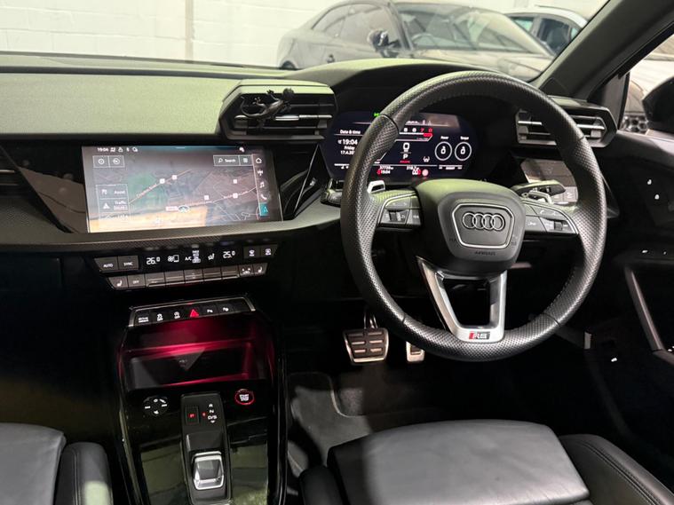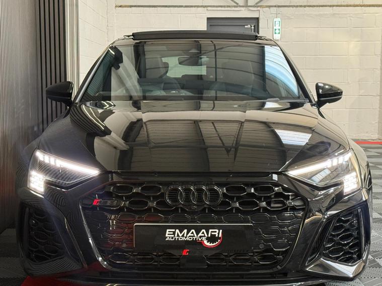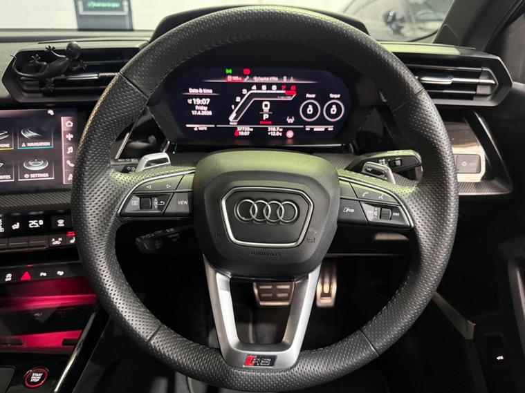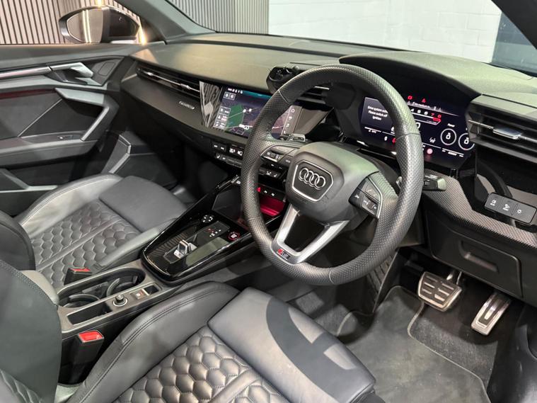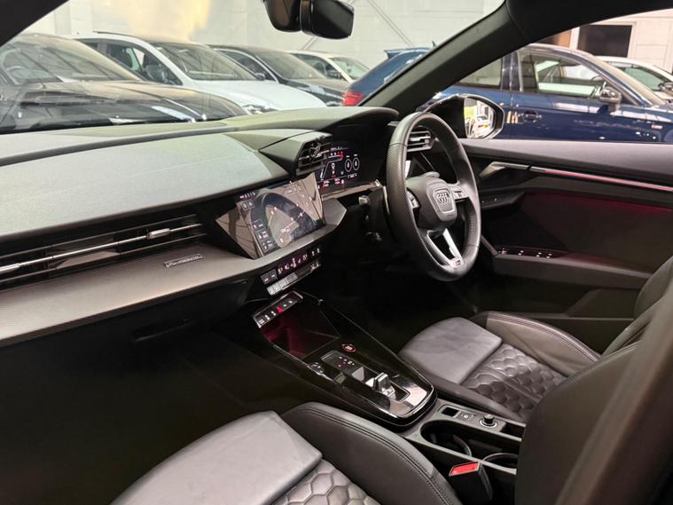 This 2023 Audi RS3 TFSI Vorsprung is presented with a clear vehicle history check, offering peace of mind for its next owner. This striking model boasts a powerful 2.5 litre petrol engine, paired with a sophisticated four wheel drive system for exceptional handling and performance. As a Euro 6 emission class vehicle, it meets modern environmental standards. The Vorsprung trim level ensures a premium experience, featuring Dual Zone Electronic Climate Control for personalised comfort, and advanced Audi Matrix LED Headlights with dynamic indicators and a headlight cleaning system. Further enhancing convenience are Light and Rain Sensors, which automatically manage the headlights, and electrically adjustable front seats with a memory function for the driver, alongside heated front seats for those colder journeys.The performance of this Audi RS3 is truly remarkable, highlighted by its impressive 0-62mph acceleration in just 3.8 seconds. This capability demonstrates a significant advantage over many other vehicles in its class, offering a thrilling driving experience. The combination of its potent engine, advanced drivetrain, and the comprehensive Vorsprung specification makes this 2023 Audi RS3 TFSI Vorsprung a standout choice for those seeking a blend of exhilarating performance and refined luxury..