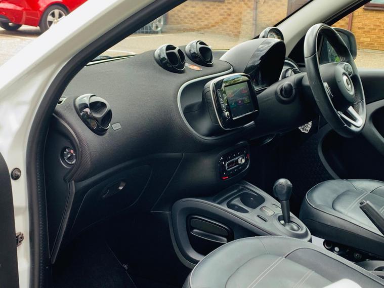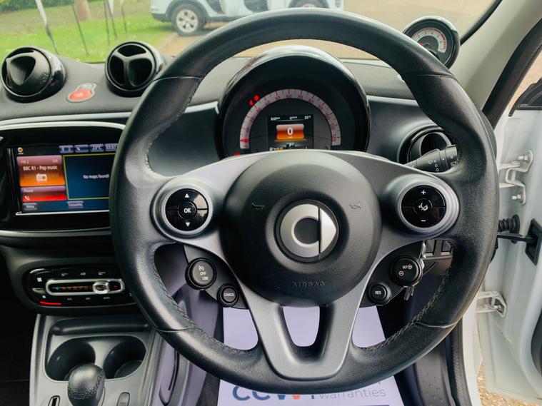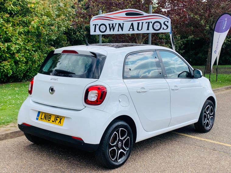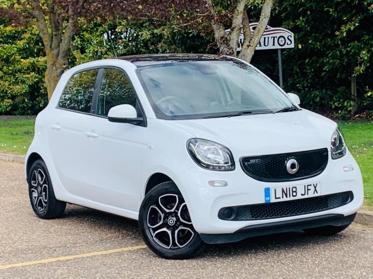 MOT 28/03/2027, 1 OWNER, SPARE KEY, LAST SERVICE@35409K, PARTIAL HISTORY, This 2018 Smart forfour Prime presents an exceptional opportunity with its remarkably low mileage of just 35, 545 miles for its age. This Euro 6 compliant, 1.0L petrol model boasts a clear vehicle history check, offering peace of mind. Inside, you'll find a comfortable and convenient cabin featuring heated seats for both the driver and front passenger, perfect for those colder mornings. Enjoy an airy feel with the panoramic roof, complete with sun protection, and stay connected and comfortable thanks to the Cool and Audio Package, which includes Bluetooth and automatic climate control. The Premium Equipment Line further enhances the experience with rear parking assistance sensors. The Smart forfour Prime stands out with its low insurance group, making it an economical choice for many drivers. Additionally, its low CO2 emissions highlight its efficiency and environmental consideration, setting it apart from many other vehicles in its class. These factors combined indicate that this Smart forfour offers a more cost effective and considerate ownership experience compared to similar cars..
