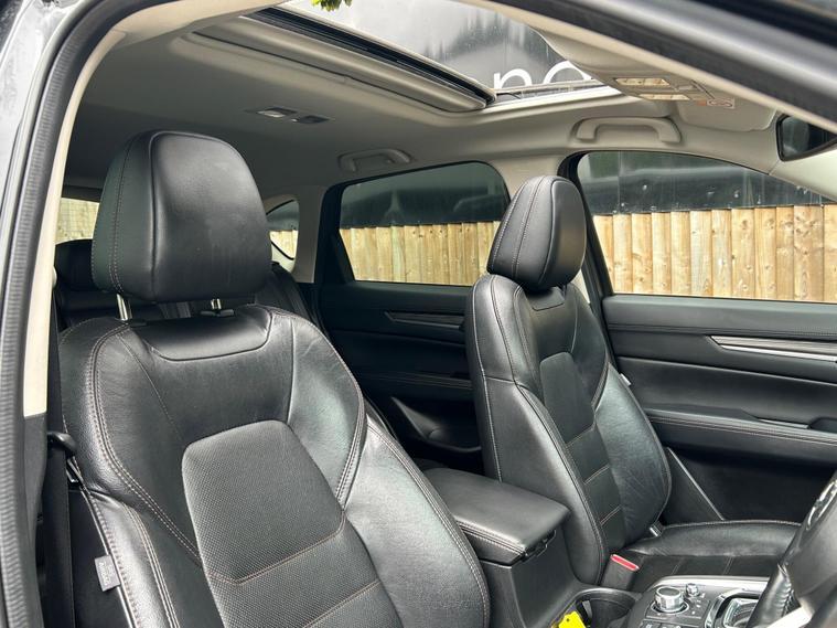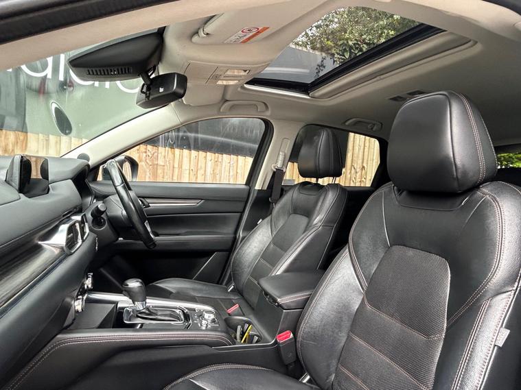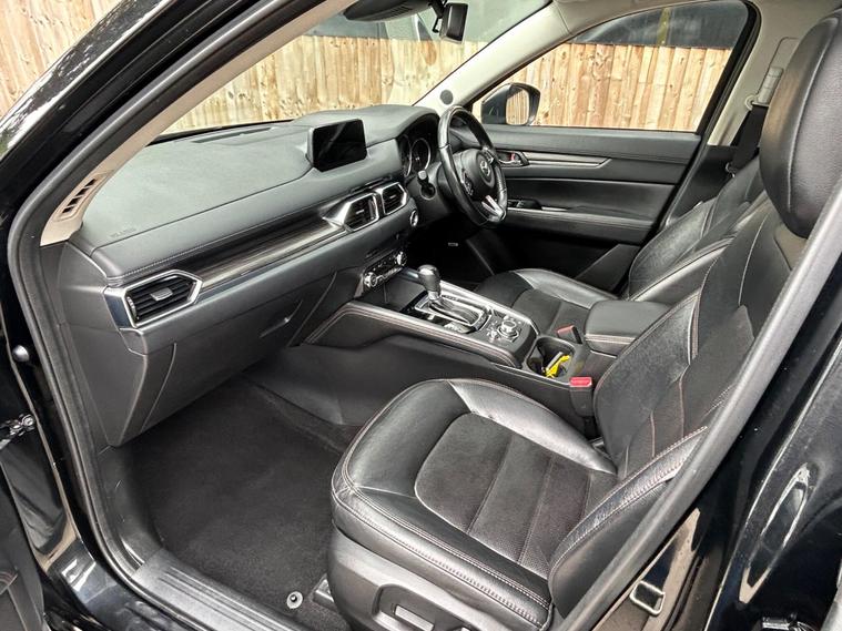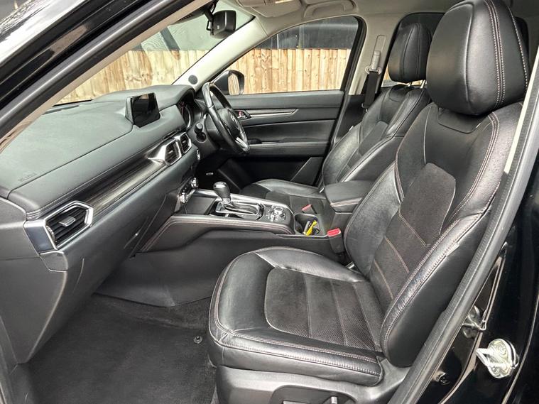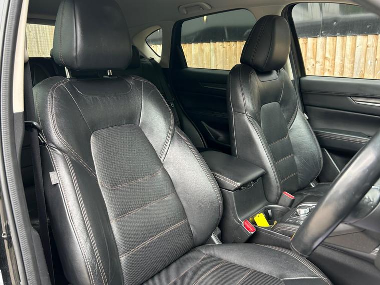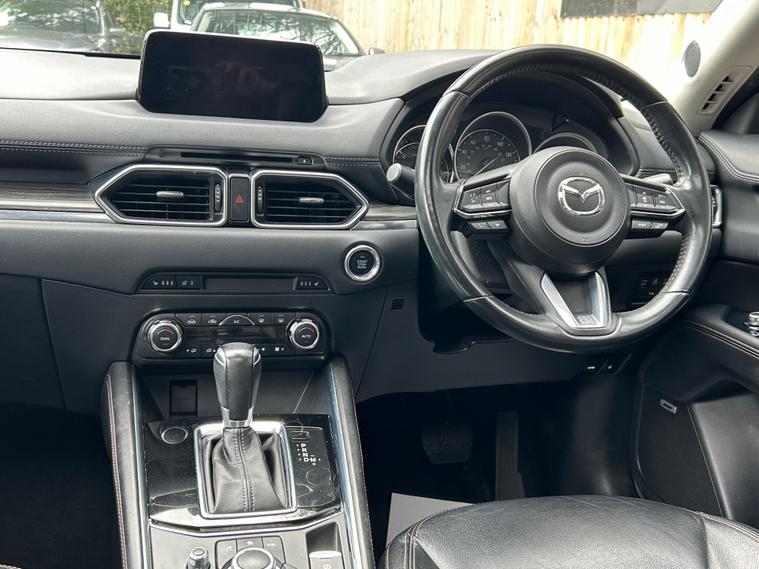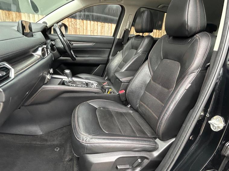 This 2018 Mazda CX-5 SKYACTIV-D Sport Nav is a well equipped four wheel drive model. It features a 2.2 litre diesel engine and meets Euro 6 emissions standards. This Sport Nav variant comes with a Smart Remote Keyless Entry System, allowing for effortless access. Inside, the driver benefits from power slide, recline, and height adjustment for the seats, complete with a memory function that links to the Smart Key. For convenience, it includes dusk sensing automatic headlights and an integrated Bluetooth system.The CX-5 SKYACTIV-D Sport Nav also boasts a colour head up display, projecting vital information such as vehicle speed, warnings, and turn by turn navigation directly onto the windscreen, alongside traffic sign recognition. This model offers excellent fuel economy, achieving up to 49 miles per gallon, and is in a low insurance group, indicating lower running costs compared to similar vehicles. Furthermore, the generous boot space provides ample room for luggage or shopping, making it a practical choice for everyday use and longer journeys..