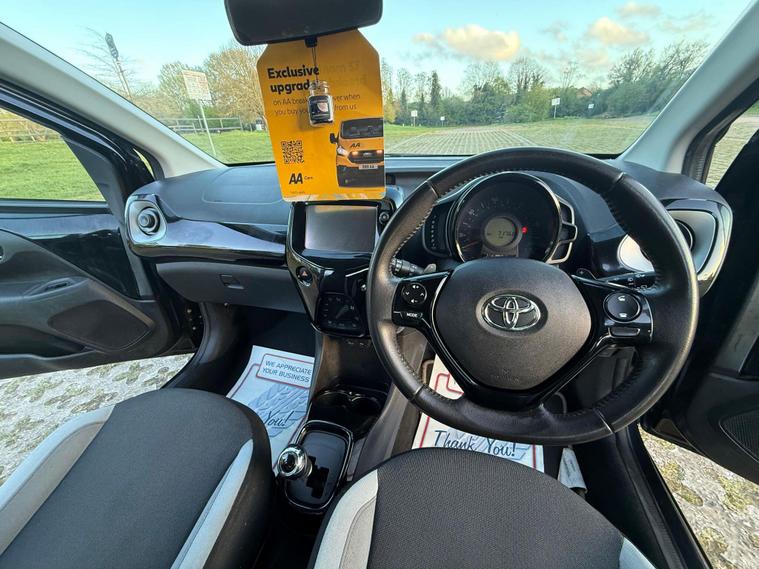 Toyota AYGO 1.0 VVT-i x-clusiv x-shift Hatchback 5dr Petrol x-shift Euro 5 (68 ps)ULEZ COMPLIANT | AUTOMATIC | 1 OWNER | HIGH SPECA very well-maintained Toyota AYGO x-clusiv Automatic, with 1 owner from new, offering excellent reliability, low running costs and easy driving. Powered by the economical 1.0 VVT-i engine (68 ps)—perfect for city and everyday use.Key Features• Automatic x-shift Gearbox• x-clusiv Specification• Alloy Wheels• Air Conditioning• Warranted Mileage• HPI Clear• ULEZ Free• Economical 1.0 Petrol EngineCondition & DriveMechanically perfect – engine wise responsive, gearbox and suspension very smooth. Very well maintained car with comfortable seats. Looks and drives brilliant. Low insurance and highly economical. Truly superb throughout – first to see will buy.Warranty & PreparationFULL DEALER HISTORY, FRESH SERVICE, FRESH MOT, FREE BREAKDOWN COVER, NATIONWIDE DELIVERY AVAILABLE3 MONTHS WARRANTY INCLUDED – EXTENDABLE UP TO 2 YEARSView By Appointment Only – Part Exchange Welcome.