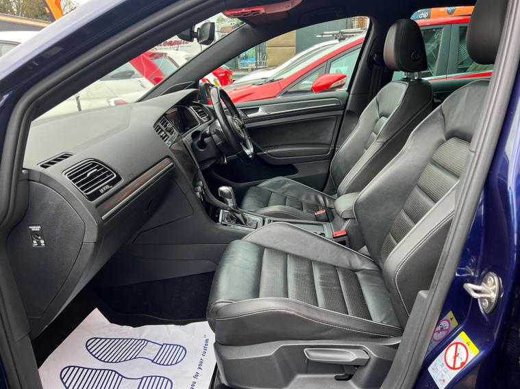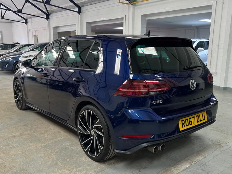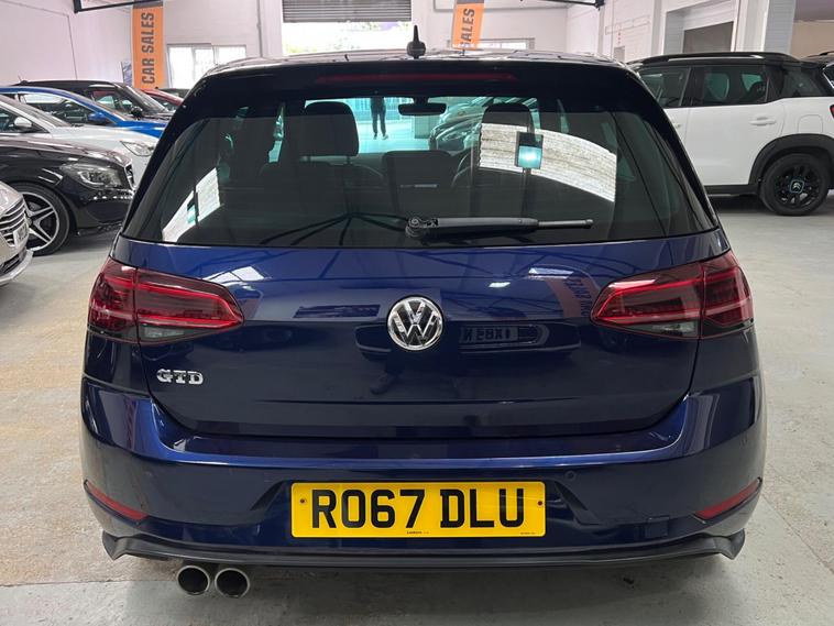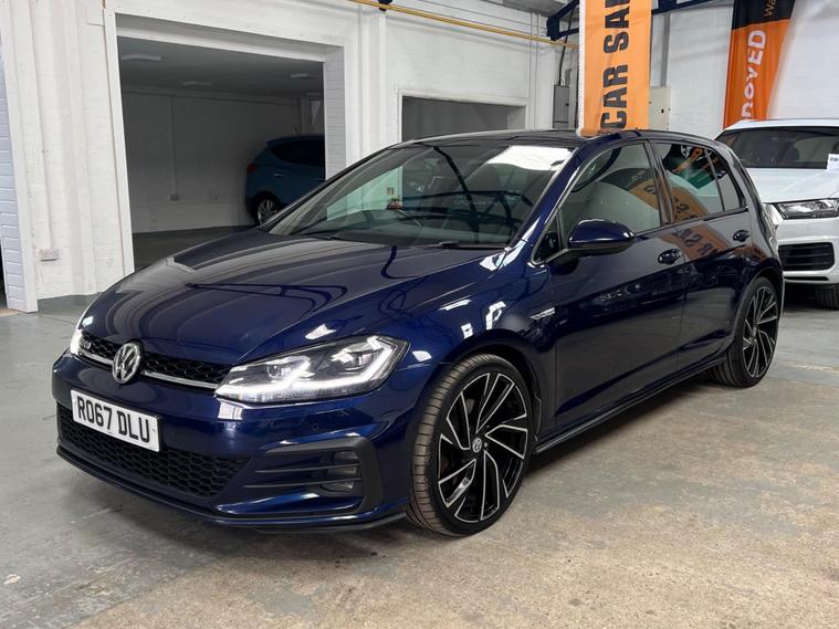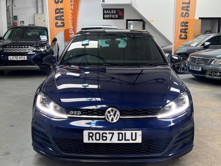 2017 VW Golf GTD DSG 5dr | Pan Roof | Virtual Cockpit | Dynaudio | Full VW History, , Mileage: 99, 800 miles, Transmission: DSG Automatic, Fuel: Diesel, , Very well looked after 2017 Volkswagen Golf GTD finished in blue with a very high factory specification. The car has been maintained to an excellent standard with full Volkswagen service history and drives exactly as it should., , Major Volkswagen maintenance already completed – cambelt & water pump replaced by Volkswagen and the DSG gearbox serviced by Volkswagen, giving great peace of mind for the next owner., , The car drives faultlessly, pulls strongly and the gearbox changes smoothly with no issues., , The car is in excellent condition for its age and mileage, both inside and out, and has clearly been well cared for., , High Spec Includes:, * Panoramic glass roof, * Virtual cockpit (digital dash), * Dynaudio premium sound system, * Apple CarPlay, * Heated black leather seats, * Pro infotainment screen, * 5 door, , This is not your average GTD – the specification and history make it a rare example. You will struggle to find another with this level of spec and maintenance., , Very high specification GTD – you will struggle to find another with this combination of options and full Volkswagen history., Upgrades - Discover Navigation Pro Touch-Screen Navigation DVD Radio System with Integrated Voice Activation - Car-Net Guide and Inform Plus, Dynaudio Excite Soundpack, Lane Assist inc. Traffic Sign Recognition in Conjunction with Dynamic Light Assist, Mobile Phone Interface - Business, Park Assist, Voice Activation, 19in Alloy Wheels - Santiago, Heated Front Climate Windscreen, Panoramic Sunroof, Rear Tinted Glass - B Pillar Backwards - Approx 90 Percent Tinted, Electrically Adjustable Drivers Seat with Memory Function, Smoking Pack, Vienna Leather - Black, LED Headlights with Dynamic Light Assist, Lane Assist Plus with Dynamic Light Assist - Emergency Assist - Rear Traffic Alert - Traffic Jam Assist and Traffic Sign Recognition, Rear Side Airbags with Rear Seatbelt Warning, DCC - Dynamic Chassis Control, Next MO.
