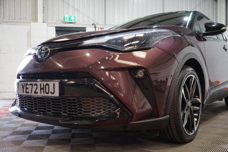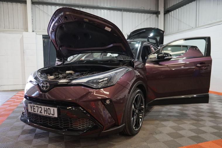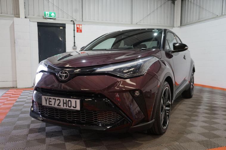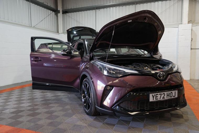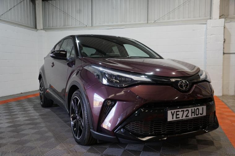 The Toyota C-HR 1.8 VVT-h GR SPORT CVT Euro 6 (s/s) 5dr combines bold crossover styling, refined hybrid efficiency and sporty GR SPORT dynamics in a distinctive, fun-to-drive compact SUV package. Powered by Toyota’s smooth 1.8-litre petrol-electric hybrid system delivering a combined 122 PS, paired with the seamless CVT automatic transmission, it offers responsive performance, excellent fuel economy (around 55-60 mpg) and ultra-low emissions.Finished in striking Deep Amethyst metallic for a premium, eye-catching and sophisticated appearance. This example presents beautifully and benefits from full service history. It is HPI clear, with a full report provided for complete peace of mind.Factory specification includes:● GR SPORT aerodynamic body styling with aggressive front bumper, side skirts and rear diffuser● 18'' GR SPORT black alloy wheels● Sports suspension● Bi-LED headlights with LED daytime running lights● GR SPORT sports seats with red contrast stitching● 8'' Toyota Touch 2 multimedia touchscreen with navigation● Apple CarPlay & Android Auto● Dual-zone climate control● Reversing camera● Front and rear parking sensors● Toyota Safety Sense with autonomous emergency braking● Lane Departure Alert with Steering Assist● Adaptive cruise control● Heated front seatsAdditional features include the desirable GR SPORT enhancements for a more dynamic look and feel, plus full service history ensuring reliability, maintained condition and complete peace of mind.A superbly presented Toyota C-HR 1.8 VVT-h GR SPORT Hybrid with the efficient self-charging hybrid system, blending sharp crossover styling, low running costs and engaging drive. The Deep Amethyst metallic finish and full service history make this a standout, desirable and practical compact SUV ready to enjoy.All part exchange welcome with competitive valuations available.Walk-around video viewings and nationwide delivery can also be arranged..