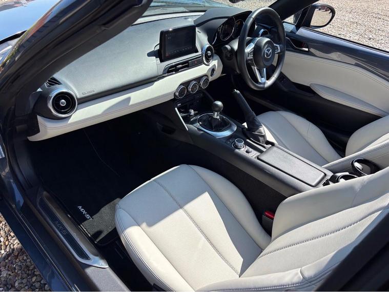 RARE 1 OWNER ONLY 17, 000 MILES FULL MAZDA SERVICE RECORDS+ GLEAMING POLY GREYWITH FULL HEATED LIGHTSTONE NAPPA LEATHER SEATS+ HI SPC+ SAT NAV TOUCH SCREEN + BOSE HIFI + CRUISE+ CLIMATE+ 17'' UNMARKED GLEAMING SATORINI BLACK BBS X SPOKE ALLOYS+ REVERSING CAMERA/SENSORS + APPLE CAR PLAY+ VIEWING ESSENTIAL+ BEST CHOICE OF QUALITY LOW MIKEAGE MAZDA MX5 IN THE UK''PLEASE SEE OUR GOOGLE REVIEWS+ SELLING MX5 FOR OVER 25 YEARS+.