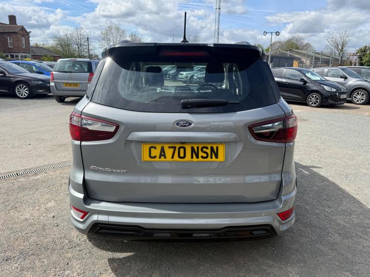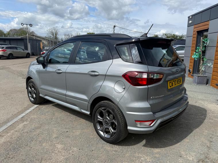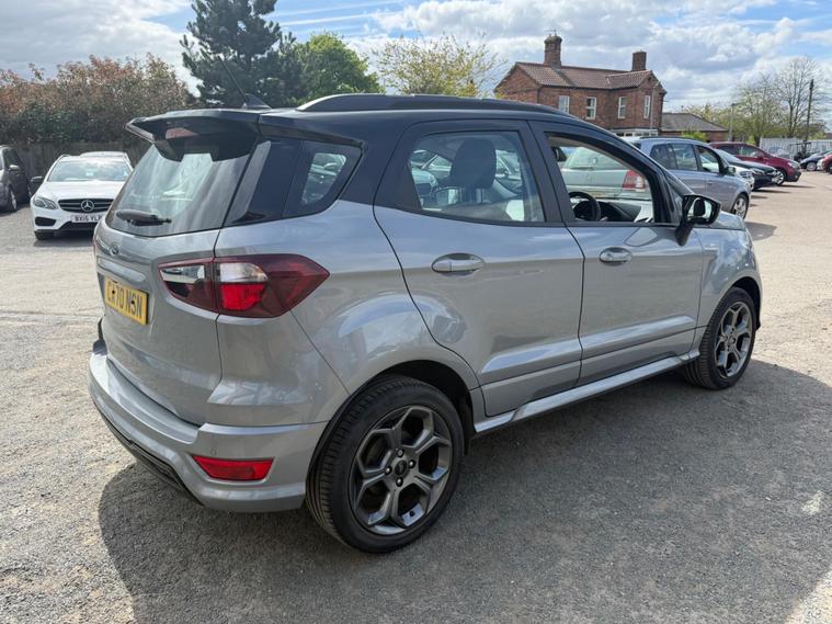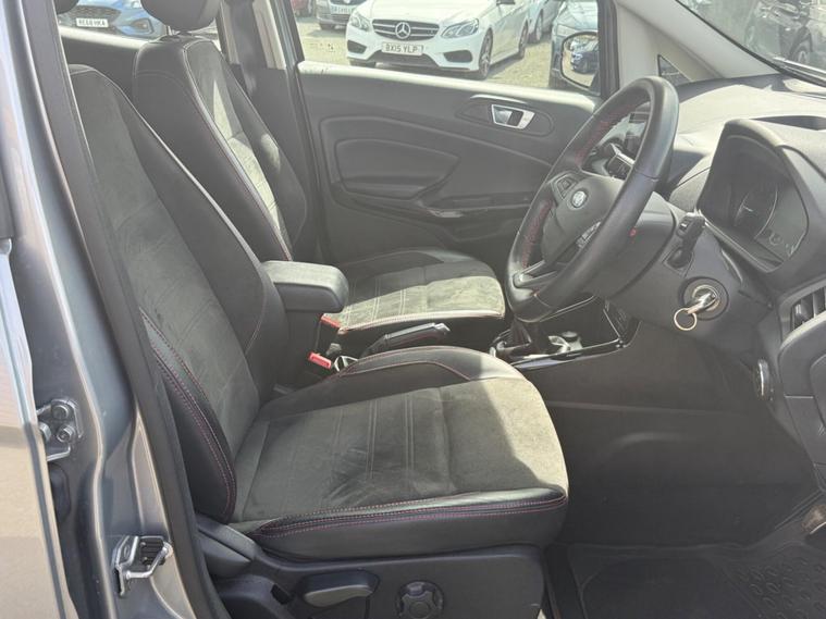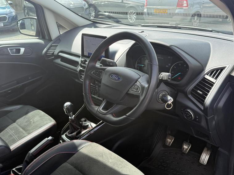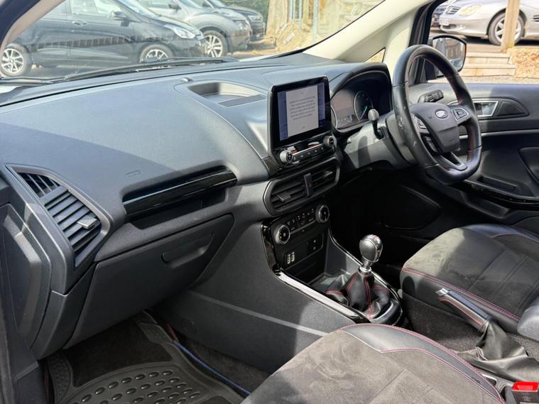This 2021 Ford EcoSport ST Line boasts exceptionally low mileage for its age, having covered just 13, 866 miles. This compact SUV is powered by an efficient 1.0 litre petrol engine and meets Euro 6 emissions standards. It comes equipped with the desirable Rear View Camera Pack, offering both a rear camera and rear parking sensors to aid manoeuvring. Inside, you'll find the Ford SYNC 3 Navigation system featuring an 8 inch touchscreen, complete with Android Auto and Apple CarPlay for seamless smartphone integration. Automatic headlights and electronic automatic air conditioning ensure comfort and convenience on every journey.The Ford EcoSport ST Line offers excellent fuel economy, achieving up to 46 miles per gallon, which is a strong indicator of its efficiency compared to other vehicles in its class. Its low CO2 emissions further highlight its environmentally conscious design. This particular model, with its ST Line trim, combines practicality with a sporty aesthetic, making it a compelling choice for those seeking a versatile and well equipped compact SUV..