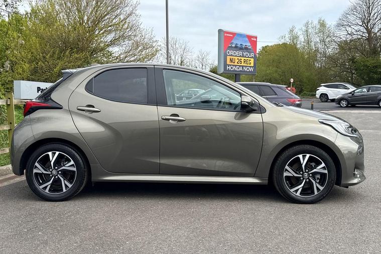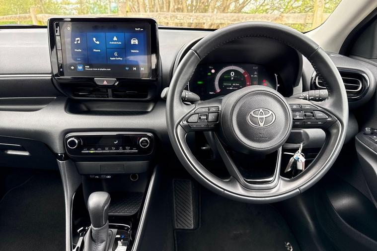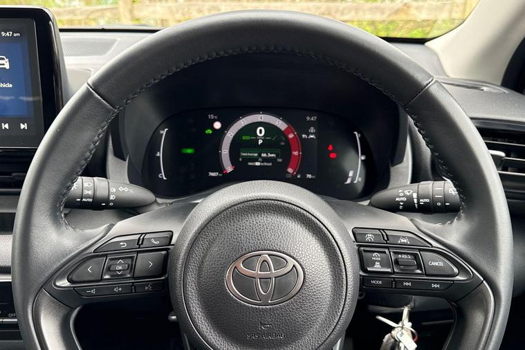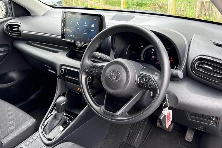 This 2025 Toyota Yaris VVT-h Design is a with a full dealership service history and only one owner from new. It features a 1.5L Petrol Hybrid Engine, meeting Euro 6 emission standards. Notable features include Bluetooth connectivity, LED front light guides and headlights, a reversing camera for easier parking, and adaptive cruise control for a more relaxed driving experience.The Yaris VVT-h Design stands out with its low CO2 emissions, indicating a more environmentally friendly and potentially more economical choice compared to similar vehicles. This model combines Toyota's renowned reliability with modern technology and efficient hybrid performance, making it a practical and appealing option for everyday driving..