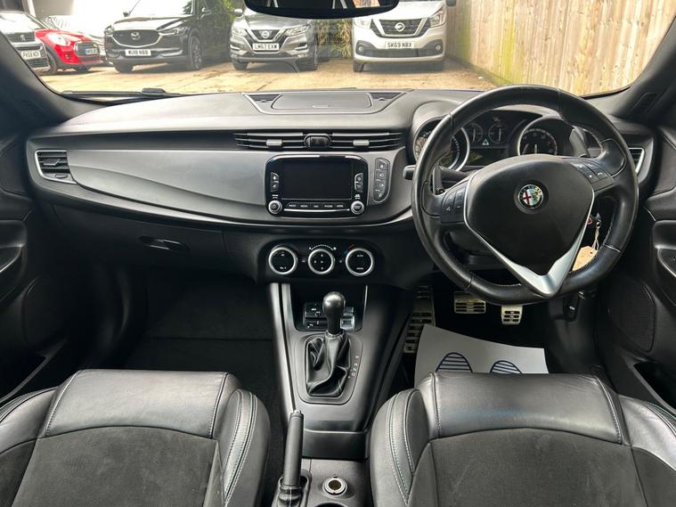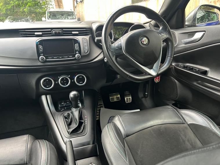 With only two owners and a remarkably low mileage of 61, 000 miles for its age, this 2015 Alfa Romeo Giulietta TBi Quadrifoglio Verde presents a compelling proposition. Powered by a spirited 1.7 litre petrol engine, this Euro 6 compliant model offers an exhilarating 0-62mph acceleration in just 6.0 seconds, a testament to its performance pedigree. The Quadrifoglio Verde trim level ensures a premium experience, complemented by practical features such as front and rear parking sensors for effortless manoeuvring, dual zone climate control to keep all occupants comfortable, and automatic headlights that activate at dusk.Beyond its impressive performance figures, this Giulietta also boasts convenient technology like Bluetooth audio streaming, allowing for seamless connection of your devices. The generous boot space provides ample room for luggage or shopping, making it a versatile choice for everyday use and longer journeys. These attributes, combined with its low owner count and mileage, clearly distinguish this Alfa Romeo Giulietta from other vehicles in its class, offering a blend of sporty driving dynamics and everyday usability..