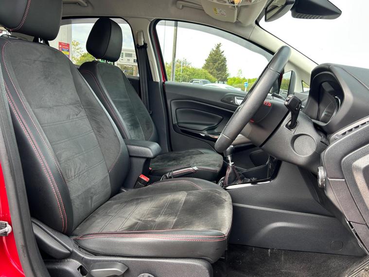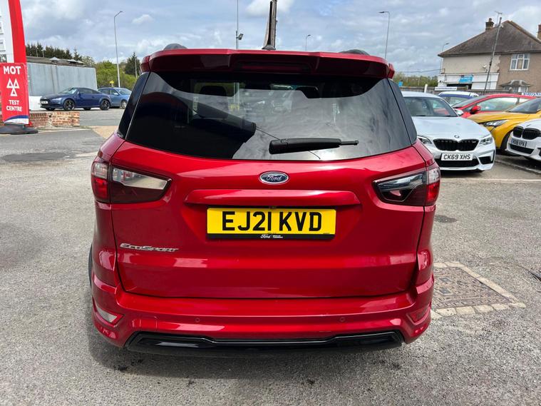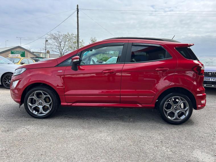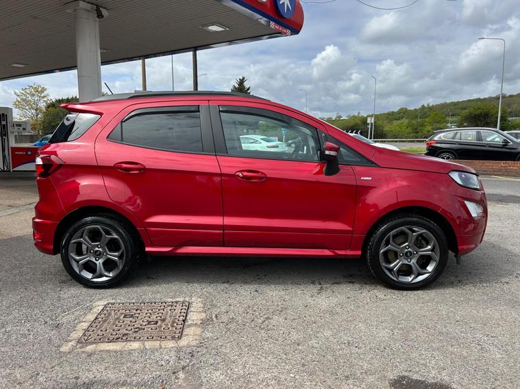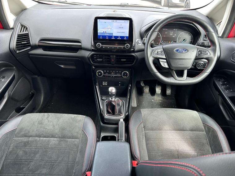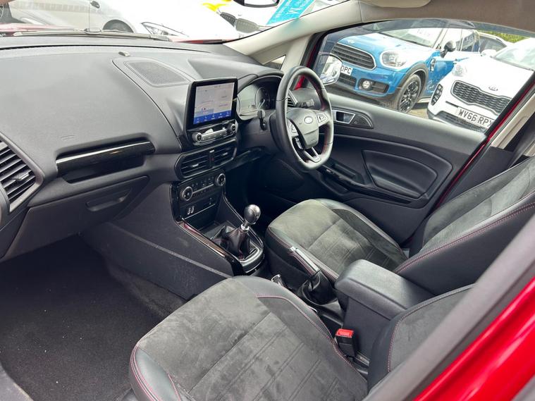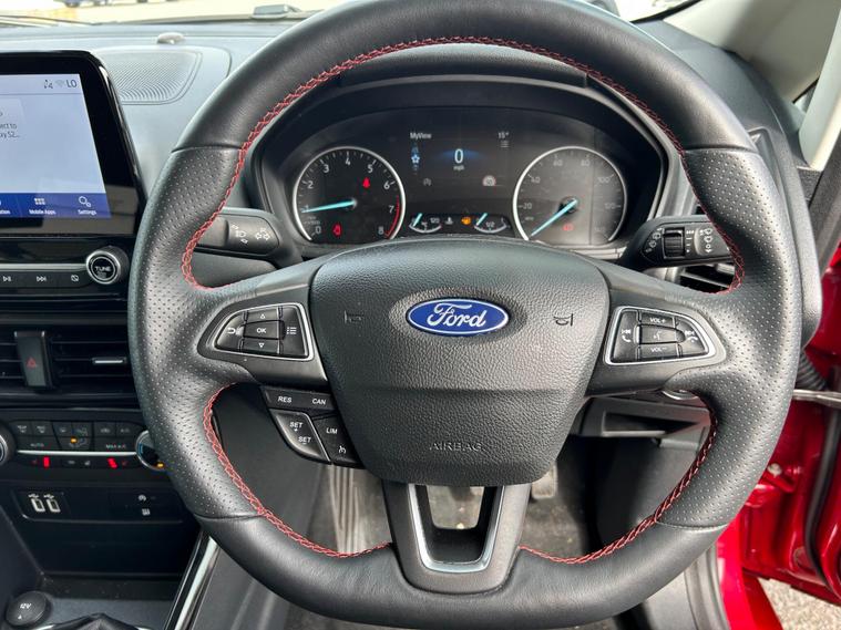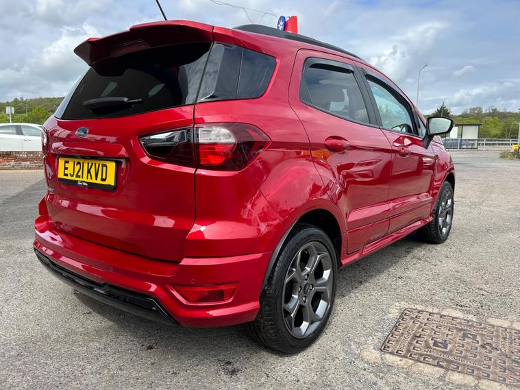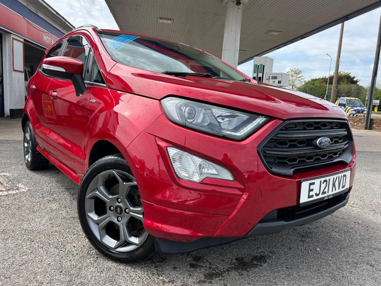 This 2021 Ford EcoSport ST-Line boasts a full dealership service history, with its last service completed on 23rd June 2025 at 27, 320 miles, offering excellent provenance. This stylish T ST-Line variant is powered by an efficient 1.0L Euro 6 petrol engine. It comes equipped with the X-Pack, which includes keyless entry and a premium branded sound system, as well as the Winter Pack featuring heated seats and a heated steering wheel for added comfort. Further enhancing your driving experience are automatic headlights, electronic automatic temperature control air conditioning, and the Ford SYNC 3 navigation system with an 8in touchscreen, compatible with both Android Auto and Apple CarPlay.This Ford EcoSport is designed to offer a superior driving experience compared to similar vehicles. It achieves an impressive fuel economy of 46 mpg, making it an economical choice for your journeys. The vehicle also benefits from low CO2 emissions, aligning with environmental considerations. For your peace of mind, a 3 month warranty is included, and 12 months MOT will be provided upon purchase, ensuring roadworthiness..
