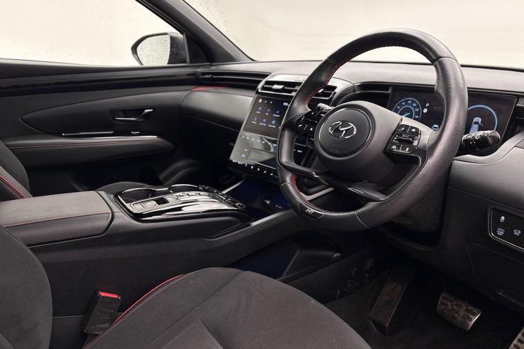 This 2023 Hyundai TUCSON h T-GDi N Line S is a superb example, having had only one owner since new and benefiting from Hyundai manufacturer approval. This Euro 6 compliant model features a 1.6 litre petrol hybrid engine, offering an efficient and responsive drive. Inside, you'll find a wealth of modern conveniences, including LED MFR headlights with static bending light, a wireless phone charging pad, and a luxurious panoramic glass sunroof that can tilt and slide electrically. The cabin also boasts three zone climate control for personalised comfort and a heated steering wheel, perfect for colder mornings.The TUCSON N Line S stands out with its impressive acceleration, reaching 0-62mph in just 8.0 seconds, demonstrating its dynamic performance. This vehicle also offers a low insurance group, making it an economical choice for many drivers. Furthermore, the generous boot space ensures practicality for everyday needs and longer journeys, indicating its versatility compared to similar vehicles..