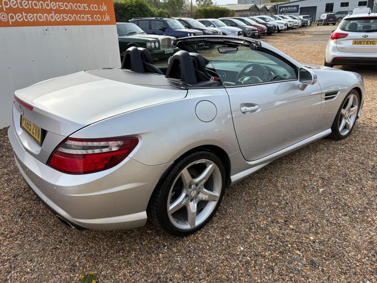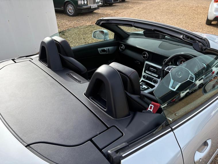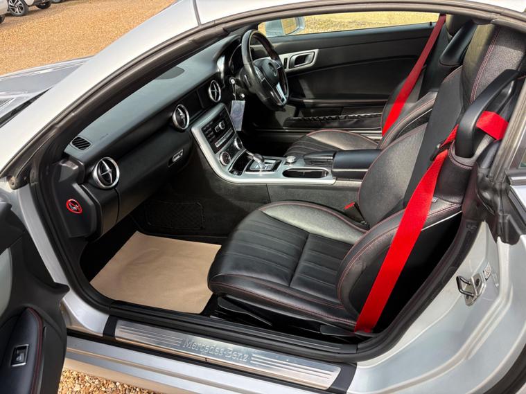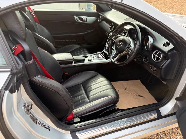 This 2015 Mercedes Benz SLK200 AMG Sport is presented with a partial service history, offering peace of mind with a 6 month warranty. This stylish convertible features the AMG Sport trim and is powered by a 2.0L petrol engine, meeting Euro 6 emissions standards. Inside, you'll find a Becker Map Pilot Navigation System to guide your journeys, red designo seat belts for a touch of flair, and Bluetooth connectivity for hands free calls. The Headlamp Assist automatically activates the headlights, and the air conditioning ensures a comfortable cabin environment.Experience impressive performance with this SLK, capable of accelerating from 0 to 62mph in just 6.9 seconds. Its fuel economy is a notable highlight, achieving up to 48 mpg, and it boasts low CO2 emissions, making it an efficient choice. The generous boot space offers practicality for your needs, demonstrating how this Mercedes Benz SLK200 AMG Sport stands out from similar vehicles..