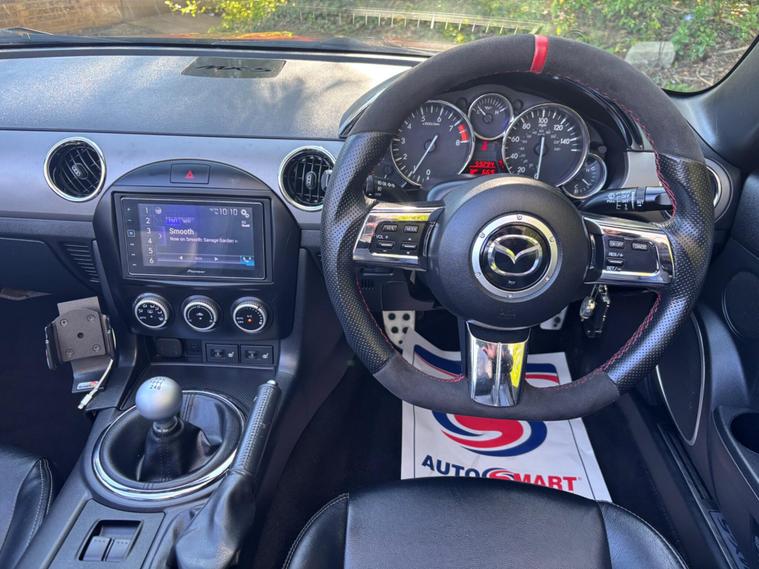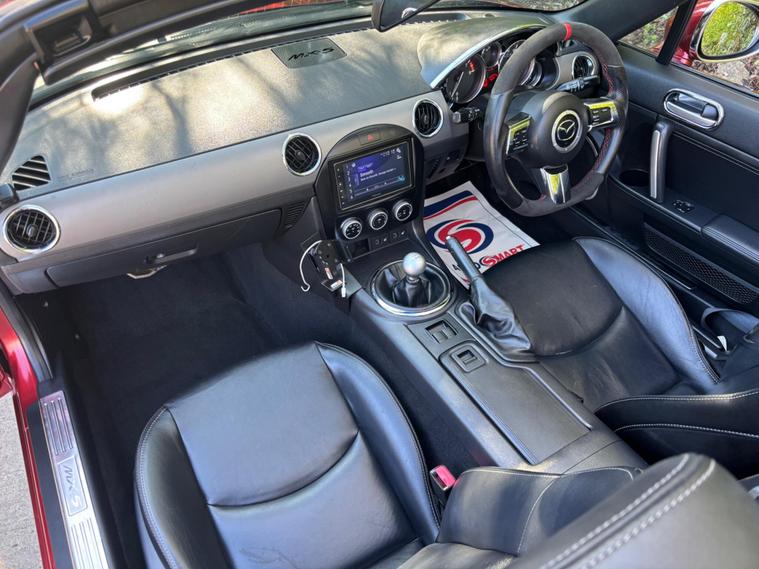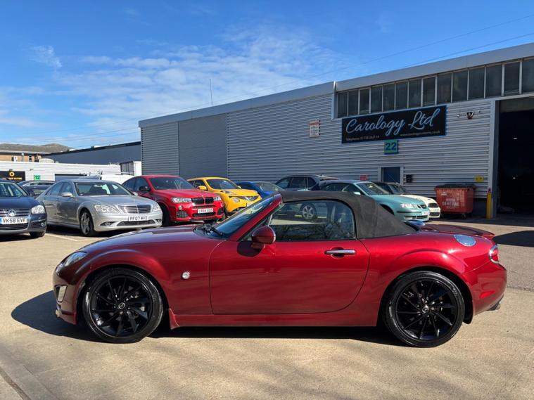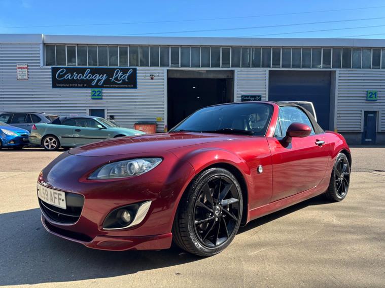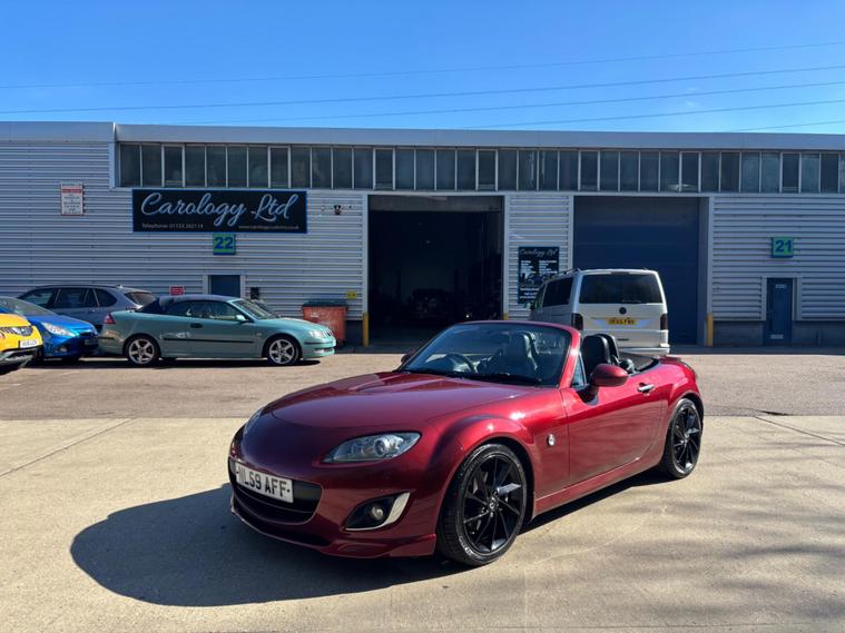 VERY CLEAN LOW MILEAGE MAZDA MX-5 SPORT TECH - GOOD SERVICE HISTORY - HPI CLEAR - BRAND NEW APRIL 2027 MOT - JUST SERVICED - GORGEOUS LOOKING CAR IN BEAUTIFUL CONDITION - 3 MONTHS NATIONWIDE WARRANTY INCLUDED - LOOKS & DRIVES SUPERB +++ Carology LTD are pleased to offer this beautiful low mileage Mazda MX-5 Sport Tech finished in copper red metallic with full black leather interior. It comes with a good service history with lots of old invoices and receipts plus and it also has a brand new 12 month MOT until April 2027. We have just carried out an annual service as part of our own preparation so its ready to drive away. Overall this is a lovely example is in excellent condition, the bodywork is very good, the interior still looks bright and clean plus we have just refurbished the alloy wheels in black pearl which has really finished her off. This is really clean example, drives really well and offers excellent value and performance. It has also been tasteflly modified with lowered suspension and a performance exhasut which sounds fabulous. +++ FULL VOSA HISTORY REPORT TO VERIFY MILEAGE, HPI CLEAR, AA APPROVED DEALER, NATIONWIDE DELIVERY AVAILABLE, 3 MONTH COMPREHENSIVE WARRANTY INCLUDED - UP TO 24 MONTHS NATIONWIDE WARRANTY AVAILABLE AT COMPETITIVE PRICES - DEBIT & CREDIT CARDS ACCEPTED, PART EXCHANGE WELCOME, 2 KEYS, 12 MONTHS AA BREAKDOWN COVER, ZUTO CAR FINANCE APPROVED DEALER. +++ We are a Saab and Mitsubishi specialist based in Peterborough, Cambridgeshire. We have a fully qualified Saab Master Technician and full Tech 2 Saab and MUT Diagnostic facilities. For further information or to make an appointment to view this car please call us on 01733604498 or you can email us via autotrader or our website anytime. Video walk rounds available immediately via WhatsApp. Viewing by appointment..