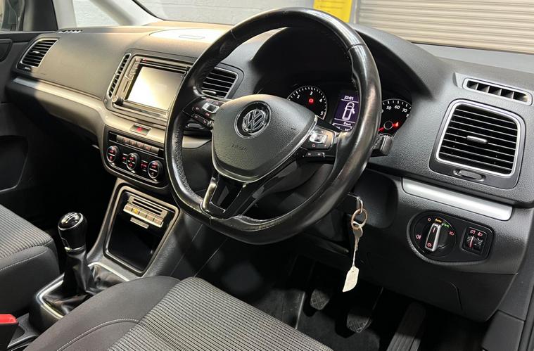 This 2018 Volkswagen Sharan TDI SE Nav presents a remarkable opportunity with its exceptionally low mileage of just 72, 430 miles for its age. This seven seater MPV, powered by an efficient 2.0 litre Euro 6 diesel engine, offers a comfortable and practical driving experience. The SE Nav trim level ensures you benefit from desirable features such as climate control, front and rear parking sensors for effortless manoeuvring, and a dusk sensor that automatically activates the headlights. Connectivity is also a breeze with the Composition Media System, complete with Bluetooth for hands free calls and music streaming.The Volkswagen Sharan TDI SE Nav is designed for those who need space and versatility, boasting a generous towing weight of 2200 kg. Its performance is highlighted by a brisk 0-62mph acceleration time of 10.3 seconds, demonstrating a capable and responsive drive. These attributes, combined with its well appointed SE Nav specification and the advantage of its low mileage, position this Sharan as a superior choice for families and individuals seeking a reliable and well equipped vehicle..