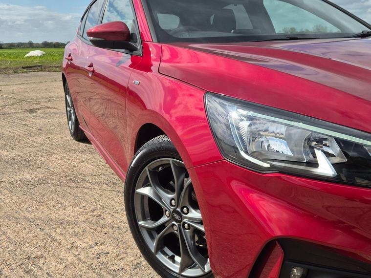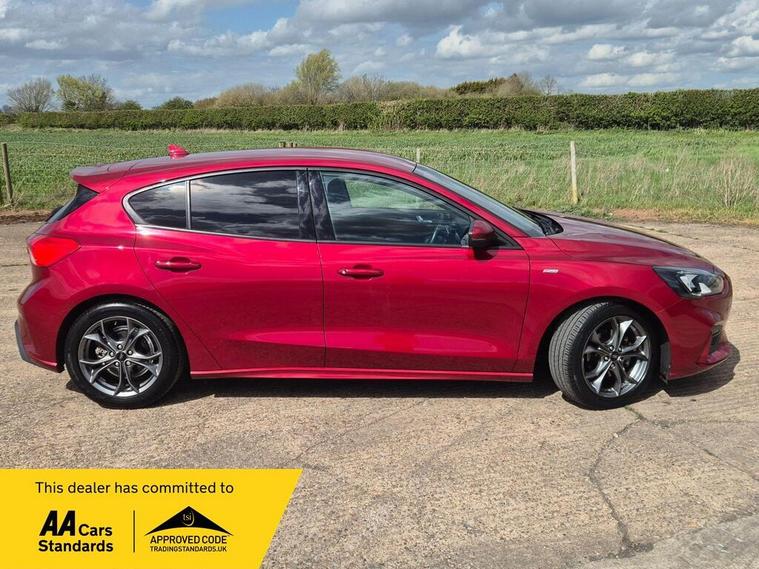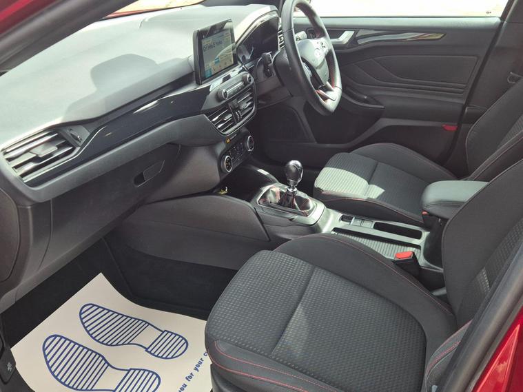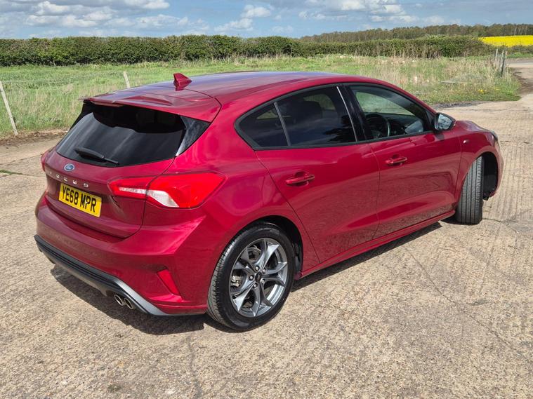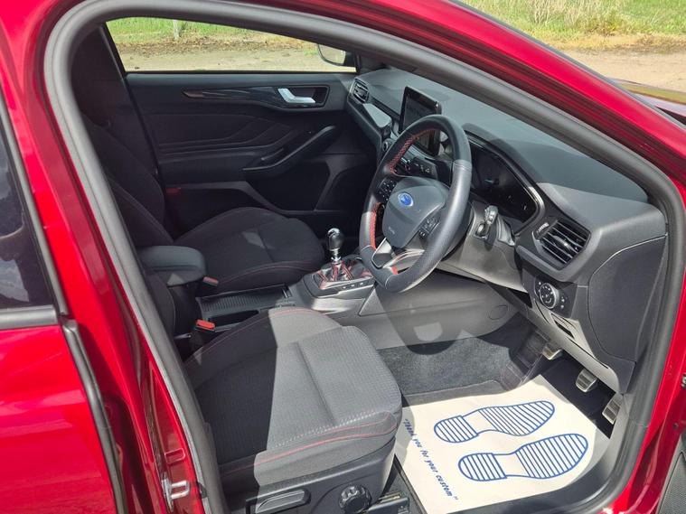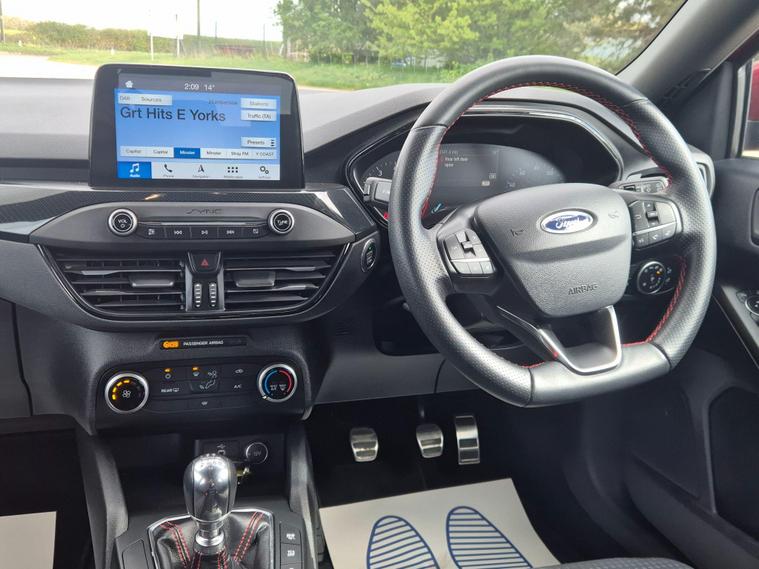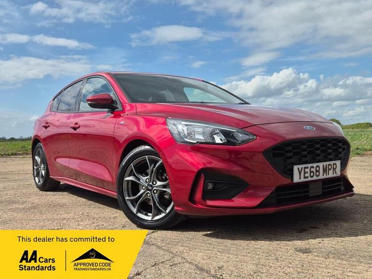 This 2018 Ford Focus ST Line presents an exceptional ownership proposition with a mere 14, 325 miles on the clock and a single previous owner. This Euro 6 compliant 1.0 litre petrol model, finished in the sporty ST Line trim, offers a compelling blend of efficiency and driving enjoyment. Inside, you'll find the Ford SYNC 3 DAB radio system, complete with a vibrant 6.5 inch floating touchscreen that seamlessly integrates with both Android Auto and Apple CarPlay, ensuring your favourite apps and music are always accessible. The convenience of automatic headlights, which switch on when needed, further enhances the driving experience.The Ford Focus ST Line stands out with its impressive performance figures, achieving 0-62mph in just 10.0 seconds, demonstrating its responsive nature. Furthermore, its low CO2 emissions highlight its consideration for fuel economy and environmental impact, making it a sensible choice for many drivers. These attributes, combined with its low mileage and single owner history, position this particular Focus ST Line as a superior option compared to other vehicles of its age and class..