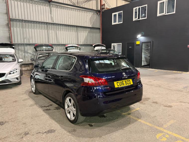 We are delighted to offer for sale this 2016 (16) Peugeot 308 1.2 PureTech Allure EAT Automatic in gleaming Dark Blue. In very good condition throughout, this affordable 5 door hatchback is very economical (upto 58 mpg) and ULEZ compliant. It is spacious and can comfortably seat 5 people. It also has a good sized boot. Split/fold rear seats allow increased load space. HISTORY: The vehicle has had 3 careful previous owners, comes with 2 keys and has a full service history (8 independent stamps) as well as a clean vehicle history check.The last service was completed at 63, 531 miles and the car has now covered just 69, 609 miles. It will come with a fresh 12 month MOT. SPEC: This Peugeot 308 features a 1.2L petrol engine and meets Euro 6 emissions. The Allure trim includes a 9.7in multifunction colour touchscreen with Bluetooth connectivity for your mobile devices, DAB radio, AUX/USB inputs for your music needs; front and rear parking sensors ; automatic dual-zone air conditioning and a visibility pack that includes automatic LED headlights, automatic wipers, auto dimming rearview mirror, LED daylight runner and front fog lamps for improved visibility.This particular car also comes with a very smooth automatic gearbox, HDD navigation system, Nappa leather trimmed multifunction steering wheel, front and rear armrests, electric windows all round, electric folding door mirrors, stop/start system, cruise control/speed limiter, tyre pressure monitoring system, electronic stability programme/traction control/hill assist. Both front seats have height adjustment, Isofix points allow child seats to be fitted and there is a space saver spare wheel and toolkit for your convenience. Outside the 17 inch alloys are in good condition and compliment the Blue paintwork and privacy glass perfectly.OUR PREP: For your peace of mind, this vehicle has gone through our strict preparation process including an inspection, professional valet and MOT. It is HPI clear and comes with a 3 month/2500 mile warranty included in the advertised price. Extended warranties are also available..