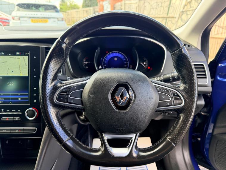 PRESENTING THIS NICELY BLUE RENAULT MEGANE FOR SALE. IN VERY GOOD BODY CONDITION INTERIOR AND ECTERIOR. MANY FEATURES IN SPECS PLEASE REVIEW. MECHANICALLY PERFECT NO ISSUES. NEW TIMING CHAIN- ENGINE OIL- OIL FILTER- AIR FILTER. LONG MOT ZERO ADVISORIES. HPI CLEAR NO ACCIDENTS.2 KEYS. 2 PREVIOUS OWNERS. SERVICE HISTORY ( 202030182412X2-2026). WARRANTED ENGINE AND GEARBOX FOR 3 MONTHS THROUGH OUR COMPANY. FLEXIBLE TO EXTEND WARRANTY. 12 MONTH AA BREAKDOWN COVER FOR FREE. FOR MORE DETAILS PLEASE CALL US.This 2020 Renault Megane TCe GT Line offers an exceptional blend of style and practicality, making it a standout choice. Powered by an efficient 1.3L Euro 6 petrol engine, this model boasts a highlight fuel economy of 47 mpg, ensuring cost effective journeys. The GT Line trim level enhances its appeal with a suite of advanced features designed for convenience and enjoyment.You'll appreciate the ease of parking thanks to the comprehensive Parking Pack, which includes front and rear sensors along with a rear camera. Inside, the R Link 2 multimedia system features an 8.7 inch touchscreen with Android Auto and Apple CarPlay integration, complemented by the Arkamys 3D Sound system for an immersive audio experience. The automatic dual zone climate control ensures comfort for all occupants, while the generous boot space provides ample room for luggage or shopping. Furthermore, this Megane sits in a low insurance group, offering further savings..
