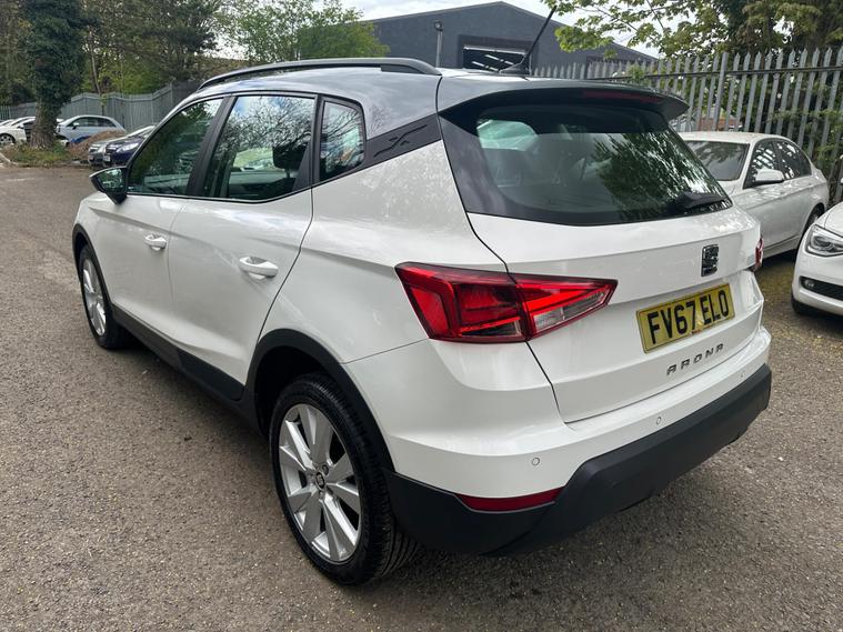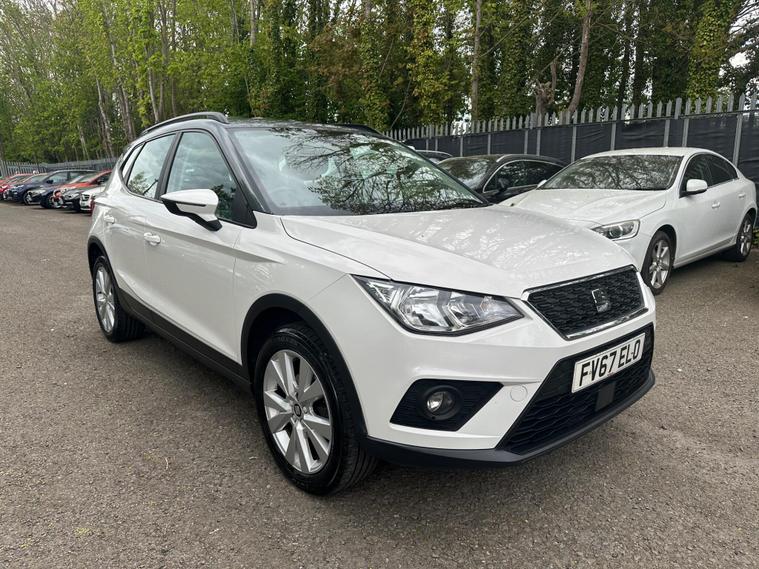 WHITE, SERVICE HISTORY, FINANCE AVAILABLE, NAVIGATION SYSTEM, PARKING SENSORS, LEATHER SEATS, SPARE KEYS, ONLY ONE FORMER KEEPER, PRIVACY GLASS, START/STOP, CRUISE CONTROL, ULEZ COMPLIANTSUPERB DRIVE, VERY ECONOMICAL, ALLOY WHEELS, CLIMATE CONTROL, VERY WELL LOOKED AFTER, VERY CLEAN IN AND OUTThis 2017 SEAT Arona TSI SE Technology is a clear vehicle history example, offering peace of mind alongside its impressive features. Powered by an efficient 1.0 litre Euro 6 petrol engine, this model boasts a Euro 6 emission class. It comes equipped with Halogen Taillights, a Connectivity Pack Plus which includes Android Auto, Apple CarPlay, and Wireless Phone Charging, and Air Conditioning. For your convenience, it also features Bluetooth Audio Streaming with a Handsfree System and Auto Headlights.The SE Technology trim of this Arona is designed to offer excellent value. Its fuel economy is a notable highlight, achieving up to 57 miles per gallon, which indicates it is more economical than many similar vehicles. Furthermore, its low insurance group and low CO2 emissions mean that running costs are kept to a minimum, making it a sensible choice for many drivers..