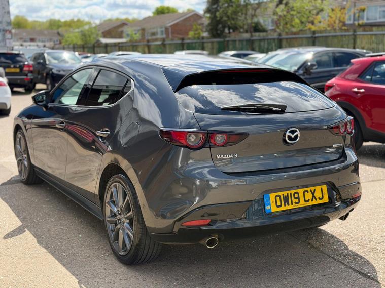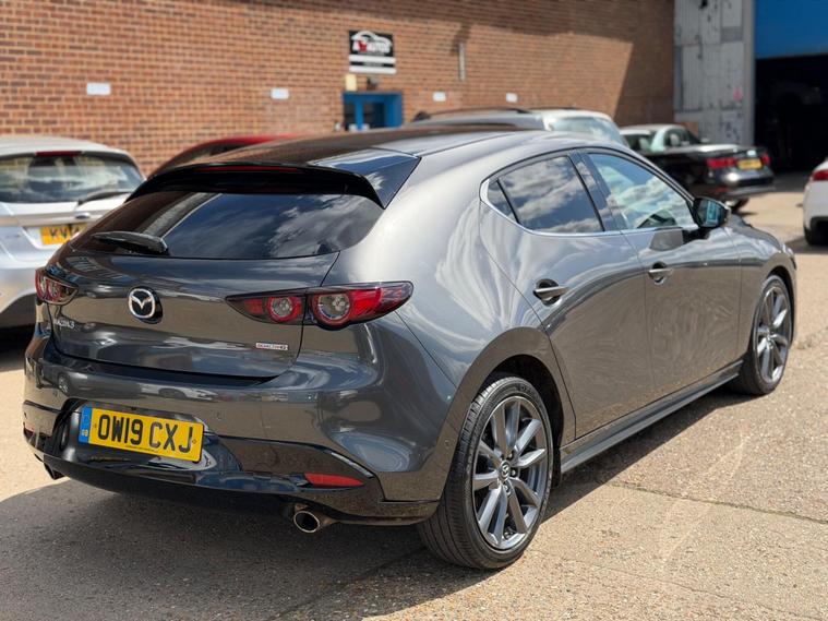 This 2019 Mazda3 SKYACTIV-G GT Sport Tech is presented with a clear vehicle history check, offering peace of mind for its next owner. This 2.0 litre petrol model, adhering to Euro 6 emissions standards, comes in the GT Sport Tech trim. It boasts a suite of advanced features designed for convenience and safety, including front and rear parking sensors with parking assistance, a colour active driving display which functions as a head up display, and a premium branded 12 speaker Bose surround sound system integrated with an AM-FM-DAB radio and single CD-MP3 player. Furthermore, the Blind Spot Monitoring system with Rear Cross Traffic Alert, including Blind Spot Assistance, enhances driver awareness.The Mazda3 SKYACTIV-G GT Sport Tech offers a compelling driving experience, indicated by its 0-62mph acceleration time of 10.4 seconds. This model also stands out with its generous boot space, providing ample room for luggage or shopping. Its low insurance group rating further enhances its appeal, suggesting lower running costs compared to many similar vehicles. The inclusion of a Gear Shift Indicator also aids in optimising fuel efficiency, demonstrating a thoughtful approach to everyday driving..