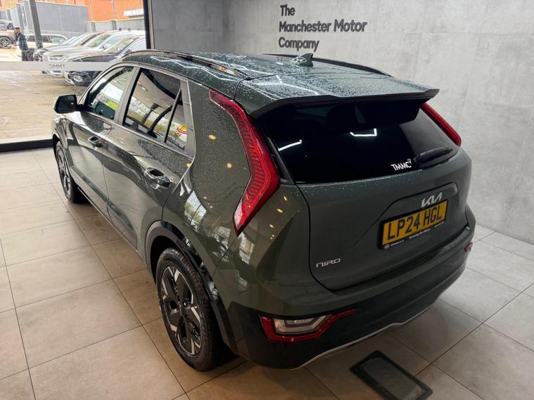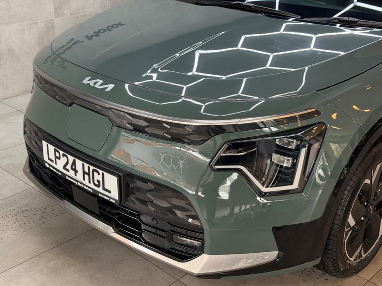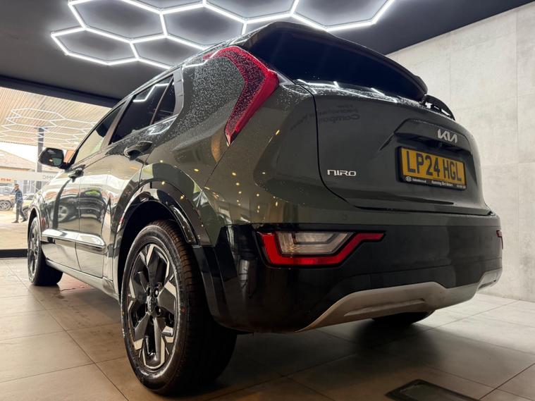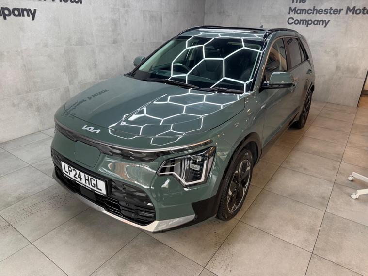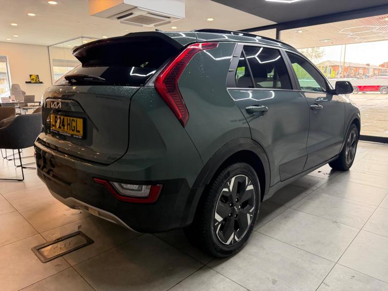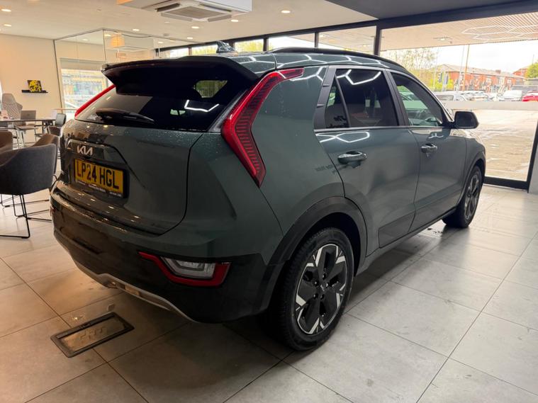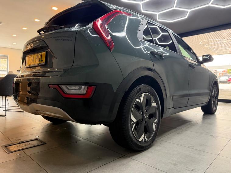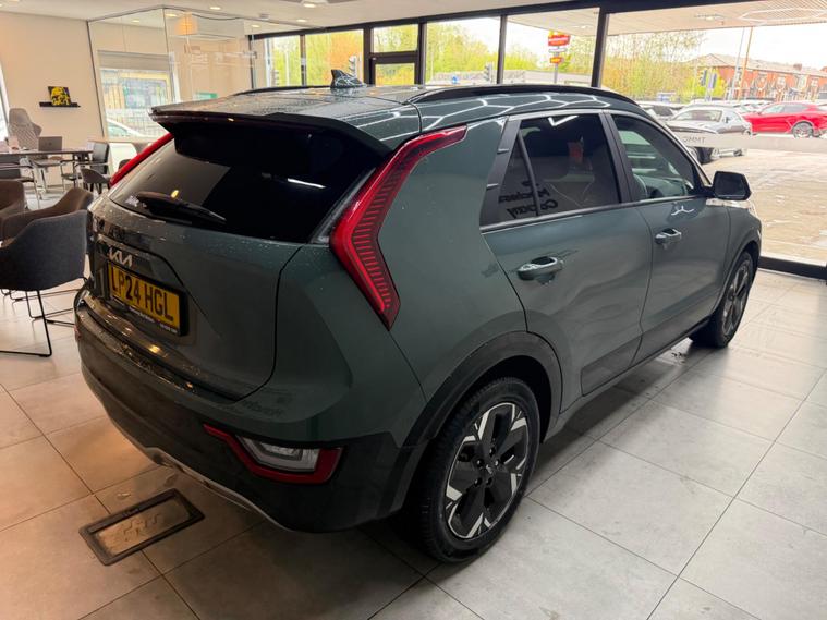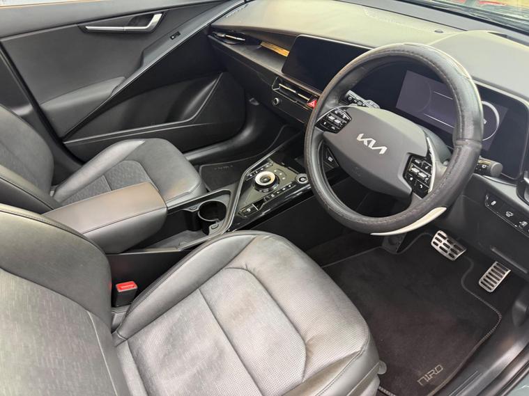 This 2024 Kia Niro 4 is an electric vehicle offering a substantial 285 miles of range from its 68 kWh battery, making it an excellent choice for both daily commutes and longer journeys. It features convenient keyless entry with a smart start stop button, alongside Auto Light Control for automatic headlight activation. Enjoy seamless connectivity with Bluetooth for music streaming and a wireless phone charger to keep your devices powered up. The Head Up Display provides essential driving information directly in your line of sight, enhancing your driving experience.The Kia Niro 4 stands out with its impressive 285 mile maximum range, a key advantage over many other electric vehicles. Charging is efficient, with a full charge at home taking approximately 9 hours and 25 minutes using a 7kW charger, and a rapid charge to 80% achievable in just 43 minutes at a public charging station. Furthermore, this model boasts a large boot space, offering ample room for luggage, shopping, or equipment, making it a practical and versatile option for any lifestyle..