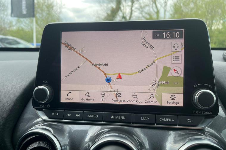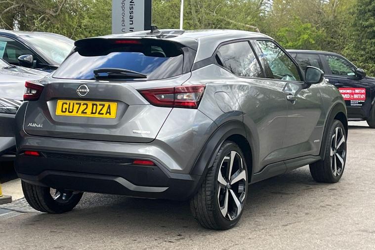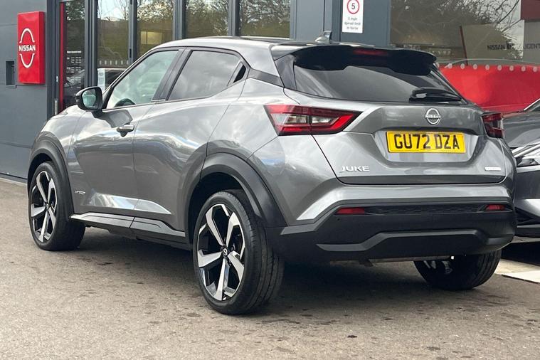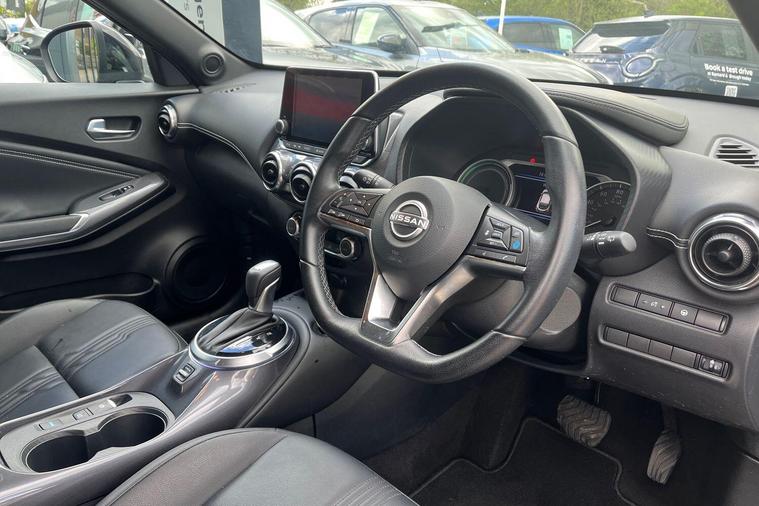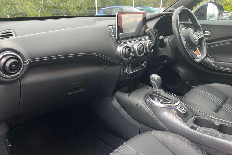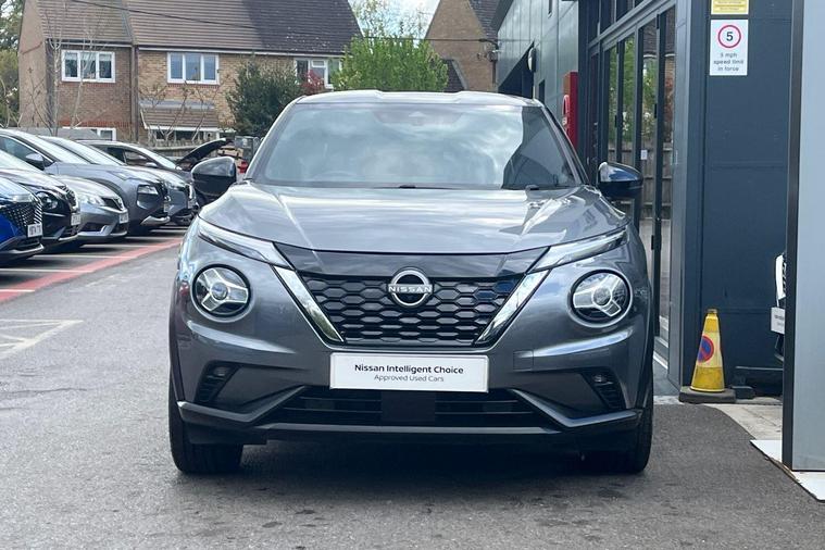 This 2022 Nissan Juke Tekna is a Nissan manufacturer approved vehicle with only one owner from new, offering peace of mind and a well cared for history. This stylish crossover is powered by an efficient 1.6L Petrol Hybrid engine, meeting Euro 6 emission standards. Inside, you'll find seamless connectivity with Apple CarPlay and Google Android Auto, making your journeys more enjoyable. The Intelligent Key system provides keyless entry and walk away lock functions, adding convenience to your daily use.The Nissan Juke Tekna stands out with its impressive fuel economy, achieving a highlight of 55 mpg, which indicates it is more economical than many similar vehicles. Furthermore, its low insurance group and low CO2 emissions highlight its cost effectiveness and environmental consideration, making it a sensible choice for many drivers..