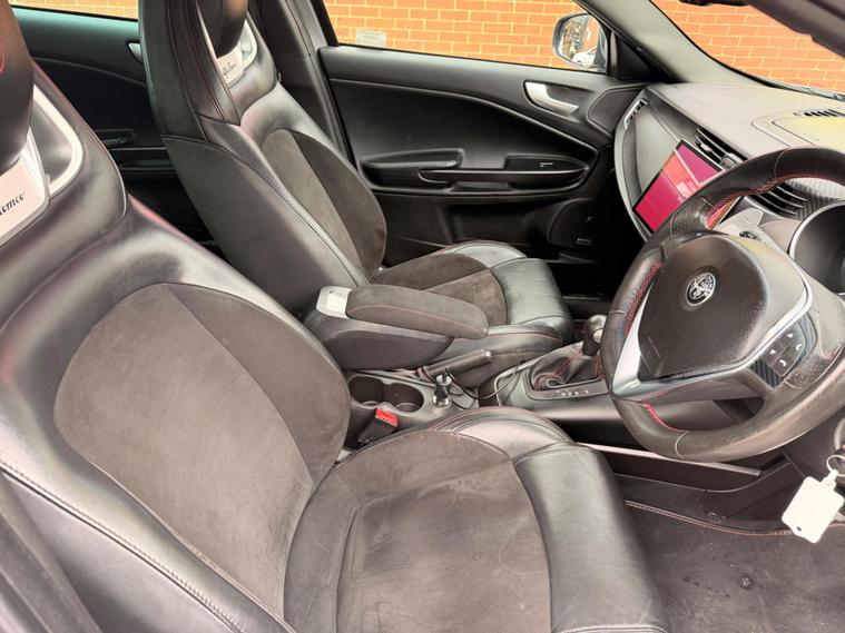 - Leather and Alcantara with Alfa Romeo Logo - Black with Red Stitching