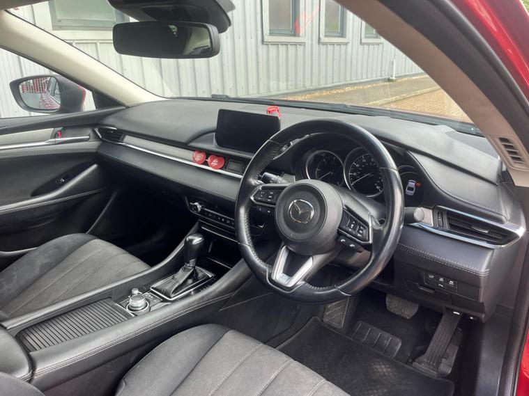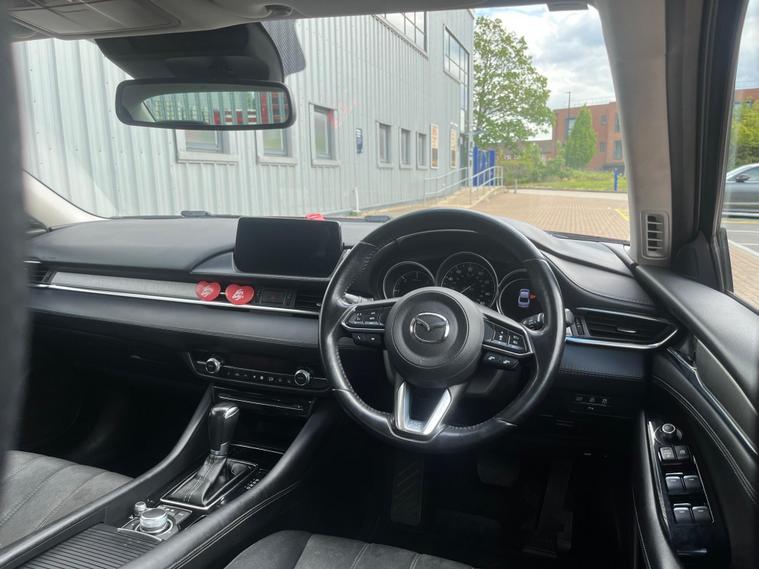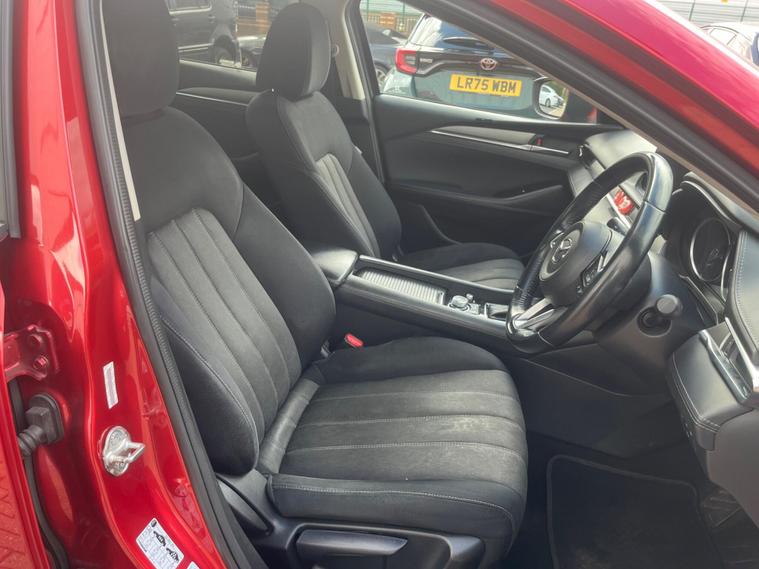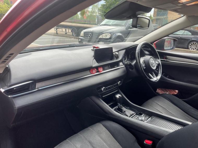 This 2018 Mazda6 SKYACTIV-D SE-L Nav+ boasts a clear vehicle history, offering you peace of mind. Powered by a 2.2 litre Euro 6 diesel engine, this SE-L Nav+ model comes equipped with a colour active driving display, LED headlights with auto levelling, and blind spot monitoring with rear cross traffic alert. Enjoy the convenience of dusk sensing automatic headlights and dual zone climate control, ensuring a comfortable journey for all occupants.The Mazda6 is designed to provide a superior driving experience, and this particular model highlights this with its advanced features. The inclusion of a colour head up display projects key information directly into your line of sight, while the LED headlights offer excellent visibility. Furthermore, the blind spot monitoring system enhances safety by alerting you to vehicles in your blind spots. This Mazda6 also benefits from a low insurance group, making it an economical choice for many drivers..