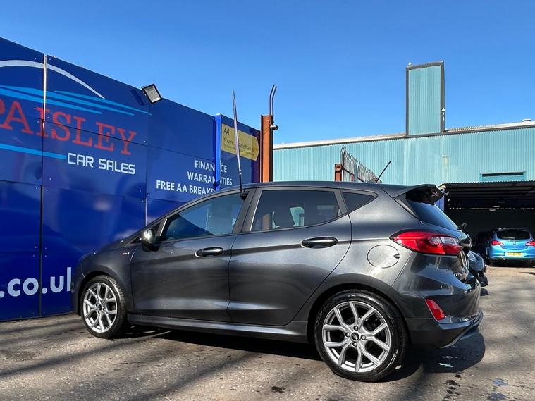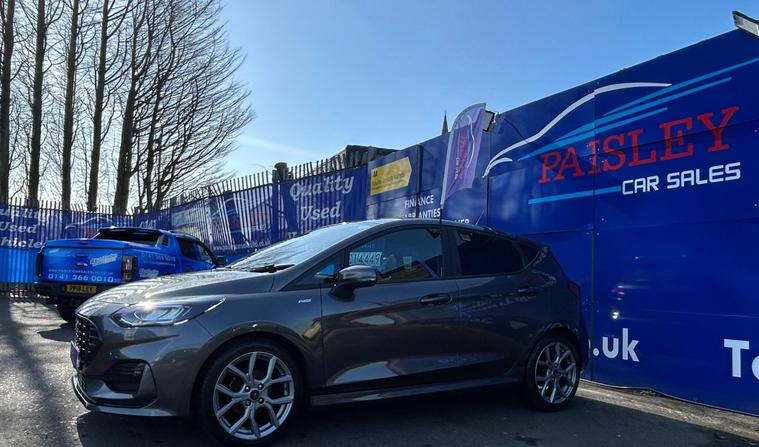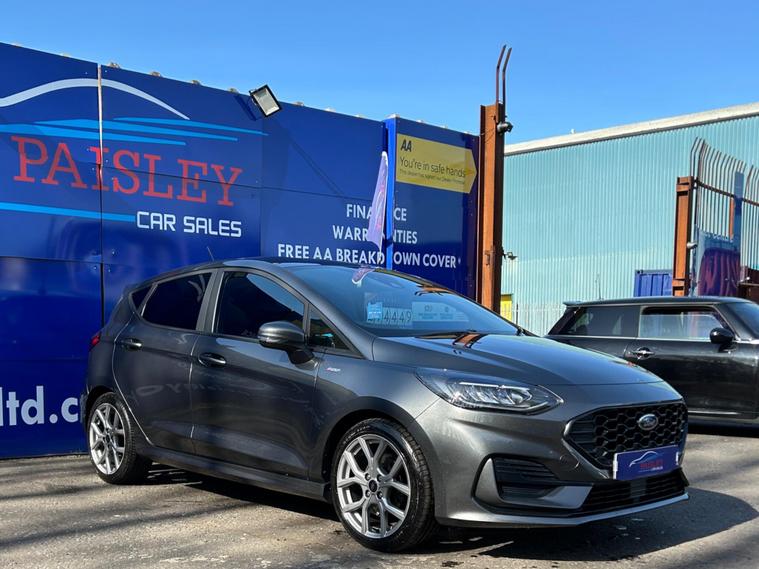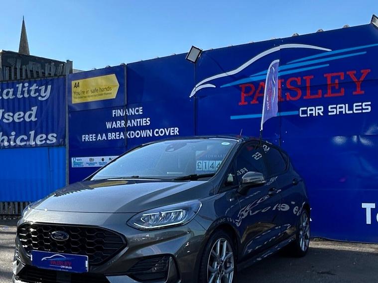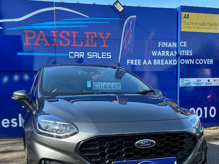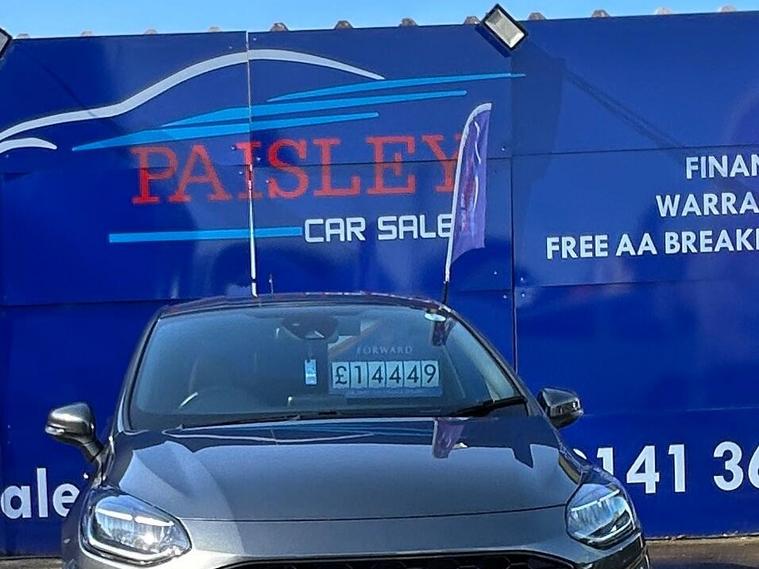 Ford Fiesta ST-Line 998 CC EcoBoost Euro 6 (s/s) 5dr, Low Mileage , Full Service History, ULEZ Compliant? Mileage: 11, 446 (Warranted)? Owners: 1 Previous Owner? Service History: Full Service? MOT Valid Until: Full 12 months? Keys: 2 Keys? ULEZ Compliant: Yes (Euro 6)? Warranty: 12Months Included This exceptionally well-maintained Ford Fiesta is in outstanding condition inside and out, boasting a great specification from the factory, including:✅ Electric Windows & Mirrors✅ Parking sensors✅ Auto Lights✅ Central Locking✅ Air Conditioning✅ Daytime Running Lights✅ Comprehensive 104-Point Vehicle Health Check Completed✅ HPI Clear – All Documentation PresentQuality Assurance & Extra Benefits:Finance Available – Competitive finance options to suit your budget.Part Exchange Welcome – Get a fair valuation for your current vehicle.AA Approved Dealership – Buy with confidence.Drive Away Same Day – 5-Day Insurance Available Courtesy of the AA.Free Home Delivery – Up to 25 miles for online orders.Flexible Payment Options – We accept all major debit cards.About Paisley Car Sales :We are a trusted, Renfrewshire-Based used car dealership, dedicated to providing high-quality vehicles and outstanding customer service. If this vehicle doesn’t meet your needs, we can source one to your specifications.? Visit Us: Office 2, Wellington street, Paisley, Renfrewshire, PA3 2JQ? Call Us: 01410022098? Website: dealer's website this exclusive web-discounted price while it lasts! Contact us today for more details or to book a test drive. ?Here at Paisley Car Sales we are always ready to go the extra mile. Don't hesitate to contact us!Vehicle registered: 28/04/2017Buying with Paisley Car Sales Ltd:Welcome to Paisley Car Sales, are a small family run used dealership. We hope you enjoy your experience with us, we encourage you to browse our current stock of cars and if there is nothing that jumps out to you, we are more than happy to source a vehicle on your request. Feel free to get in touch.