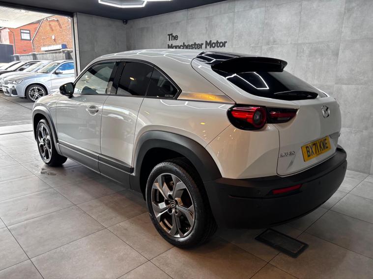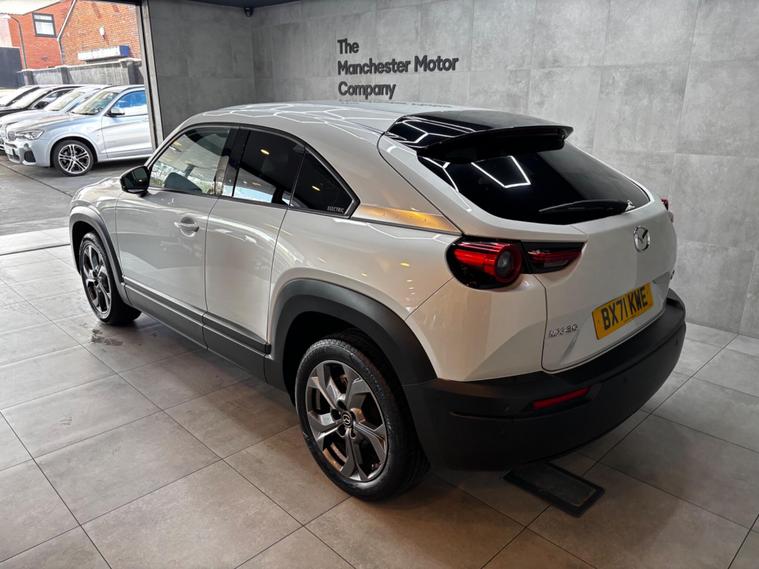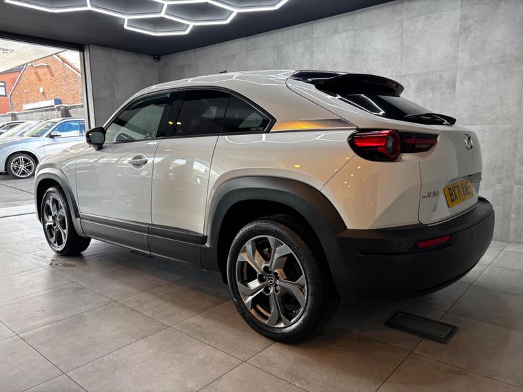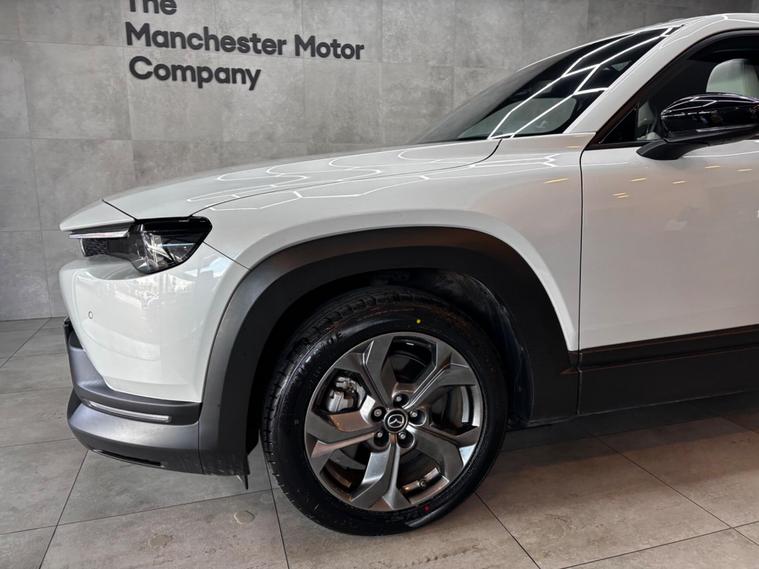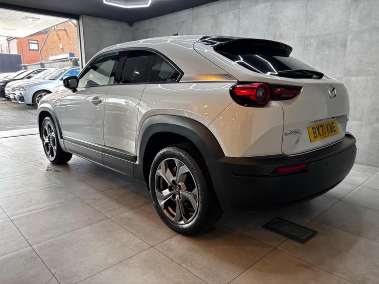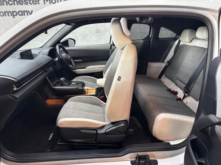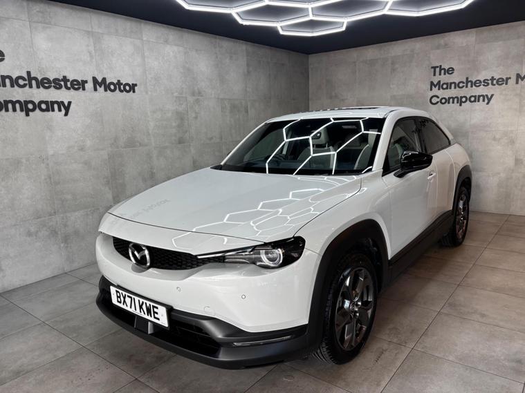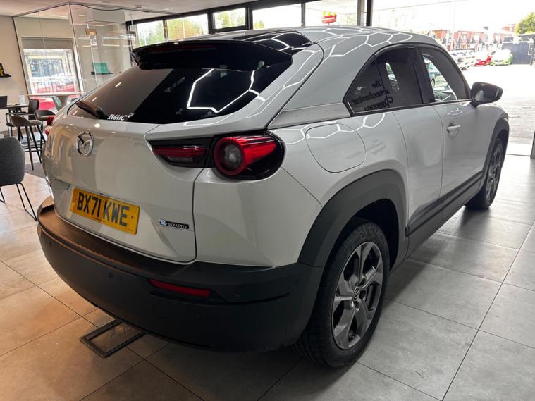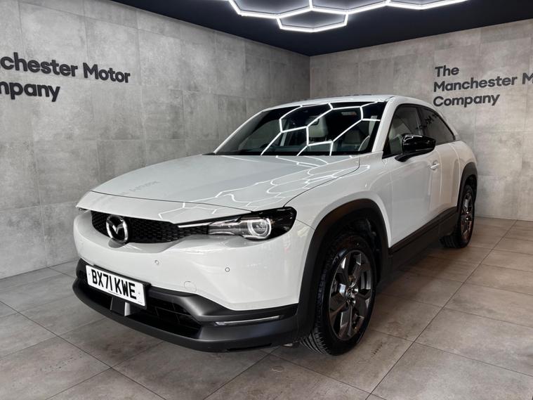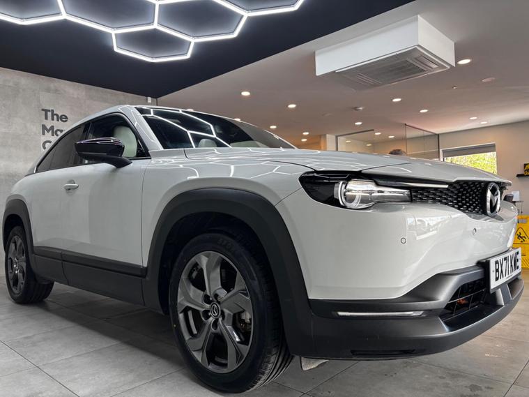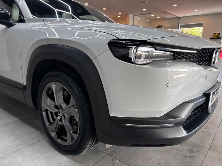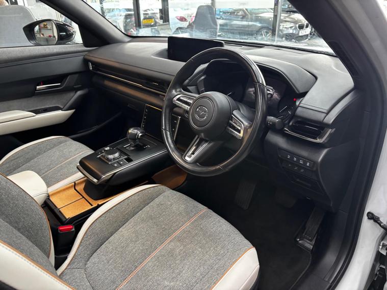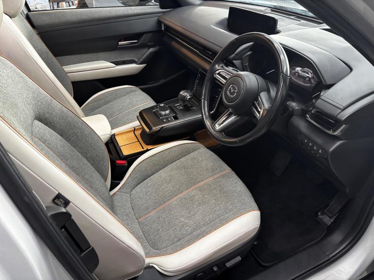 This 2022 Mazda MX-30 GT Sport Tech offers an exciting entry into electric driving. As a fully electric vehicle, it boasts a 36 kWh battery with a maximum range of 124 miles when new, making it suitable for daily commutes and shorter journeys. Charging is convenient, with a full charge at home using a 7kW charger taking approximately 5 hours, and rapid public charging can replenish the battery from empty to 80% in just 48 minutes. This GT Sport Tech model comes equipped with a premium BOSE Surround Sound System for an immersive audio experience, integrated Bluetooth for seamless connectivity, and a power tilt and slide sunroof to brighten the cabin.The Mazda MX-30 GT Sport Tech stands out with its Adaptive Signature LED Headlights, providing excellent visibility, and advanced driver assistance features like Mazda Radar Cruise Control with Intelligent Speed Assist. These features work together to enhance your driving experience, offering a more refined and safer journey compared to many other vehicles in its class. The combination of its electric powertrain, sophisticated technology, and Mazda's renowned driving dynamics makes this MX-30 a compelling choice for those seeking an electric vehicle with a touch of premium comfort and innovation..