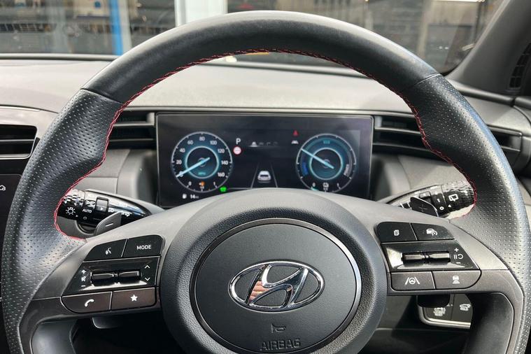 This 2022 Hyundai TUCSON h T-GDi N Line S is a standout choice, having been owned by just one careful keeper and boasting exceptionally low mileage for its year at only 19, 172 miles. This Euro 6 compliant 1.6 litre petrol hybrid is presented in the sporty N Line S trim, offering a refined driving experience. Inside, you'll find a host of desirable features designed for comfort and convenience, including a heated steering wheel for those chilly mornings, a wireless phone charging pad to keep your devices powered up, and seamless integration with Apple CarPlay for easy access to your favourite apps. The electric tilt and slide panoramic sunroof floods the cabin with light, creating an airy and open atmosphere, while the rear camera parking system makes manoeuvring effortless.The performance of this TUCSON is equally impressive, with a brisk 0-62mph acceleration time of just 8.0 seconds, demonstrating its responsive 1.6L Petrol Hybrid engine. This acceleration figure indicates that the vehicle offers a more dynamic driving experience compared to many similar models. Furthermore, its low insurance group rating suggests that running costs will be more affordable, a significant advantage over other vehicles in its class. The generous boot space provides ample room for all your luggage, shopping, or equipment, making it a practical choice for families and individuals alike..