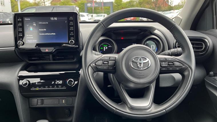 This 2023 Toyota Yaris Cross VVT-h Icon is a Toyota manufacturer approved vehicle with only one owner and a full service history, offering excellent peace of mind. This Euro 6 compliant model boasts a 1.5L petrol hybrid engine and has covered a low mileage of just 19, 858 miles for its age. It comes with a 12 month warranty for added security. Inside, you'll find an 8in Toyota Touch 2 multimedia system with smartphone integration, including Apple CarPlay and Android Auto, plus Bluetooth connectivity for seamless communication. Driving convenience is enhanced with automatic headlights and intelligent adaptive cruise control, while the reversing camera, including rear camera parking assistance, makes manoeuvring simple.The Yaris Cross Icon stands out with its impressive fuel economy, achieving a highlight of 64 mpg, which is significantly better than many other vehicles in its class. Furthermore, its low CO2 emissions and low insurance group highlight its cost effectiveness for everyday driving. This combination of efficiency, advanced technology, and excellent provenance makes this Toyota Yaris Cross a smart and practical choice..