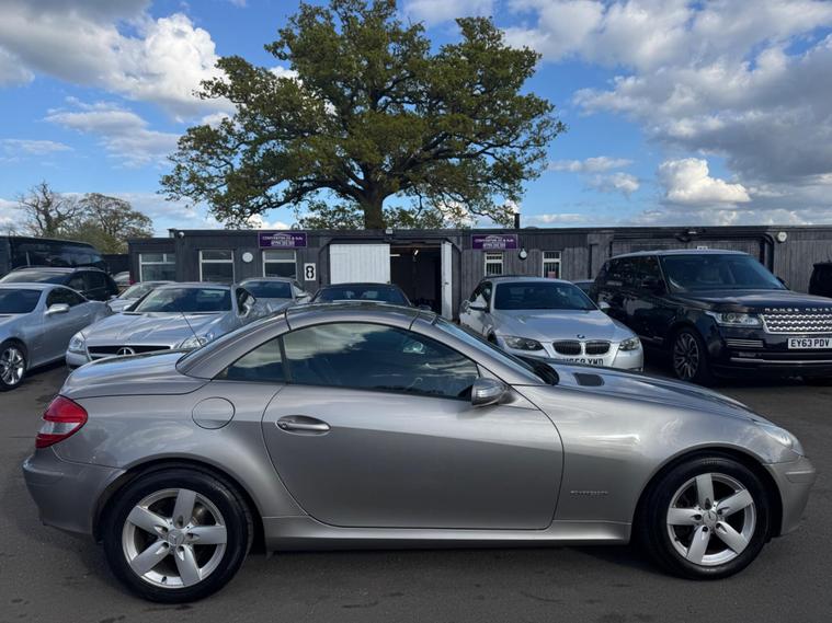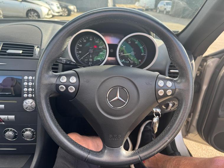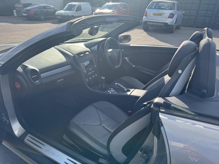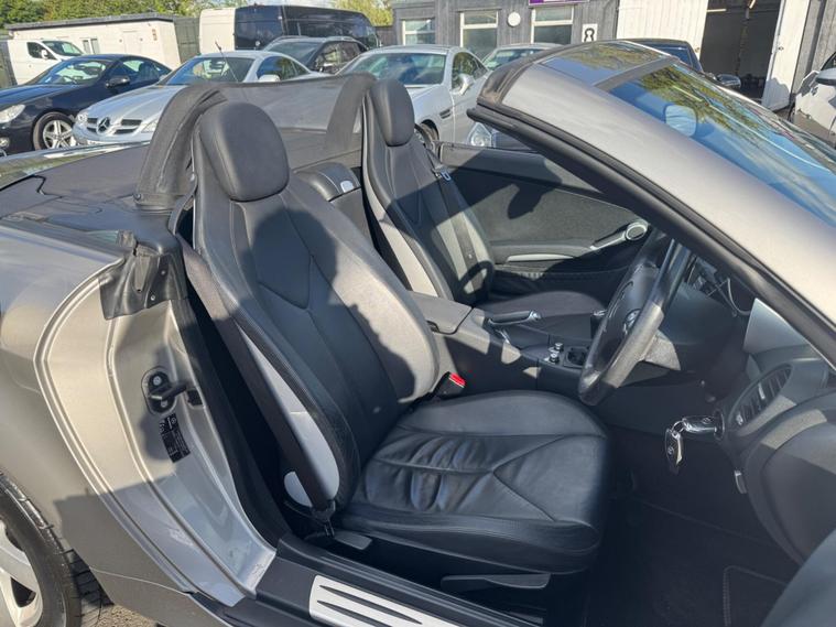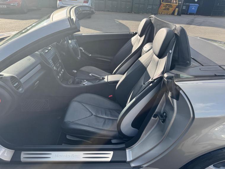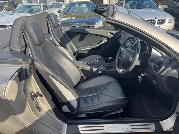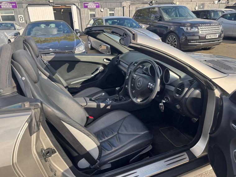 THIS Mercedes-Benz SLK 1.8 SLK200 Kompressor Sport 2dr RARE 6 SPEED MANUAL , LOOKS AMAZING IN THE BEST COLOUR GREY METALLIC CONTRASTING EBONY LEATHER & INTERIOR AND ALUMINIUM TRIM TO THE DASH AND DOOR CARDS YES VERY SMART. THE LAST OWNER HAS LOVED AND CHERISHED THE CABRIOLET FOR 6 YEARS. THERE IS A GOOD SERVICE HISTORY 12 SERVICES THE ROADSTER HAS A POWER CONVERTIBLE ROOF, DUAL ZONE CLIMATE CONTROL AIR CONDITIONING , ELECTRIC WINDOWS. STEREO RADIO/CD-PLAYER, REMOTE CONTROL CENTRAL LOCKING SYSTEM, 17 INCH ALLOY WHEELS WITH GOOD TYRES. THERE ARE TWO SETS OF KEYS & ALL THE BOOKS AND MANUALS Discover this 2006 Mercedes Benz SLK200 Sport, a stylish convertible that offers an engaging driving experience. This particular model is a 1.8 litre petrol variant, presented in the desirable Sport trim. It combines the renowned engineering of Mercedes Benz with the sporty appeal of the SLK model, making it a compelling choice for those seeking a premium open top car. This SLK200 Sport boasts an impressive fuel economy of 32 miles per gallon, demonstrating its efficiency for its class. Furthermore, it offers generous boot space, a practical consideration for any vehicle. Its low CO2 emissions also highlight its consideration for the environment. These factors collectively indicate that this Mercedes Benz SLK200 Sport presents a well rounded package, offering both performance and practicality..