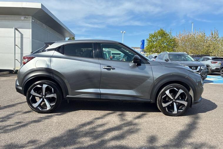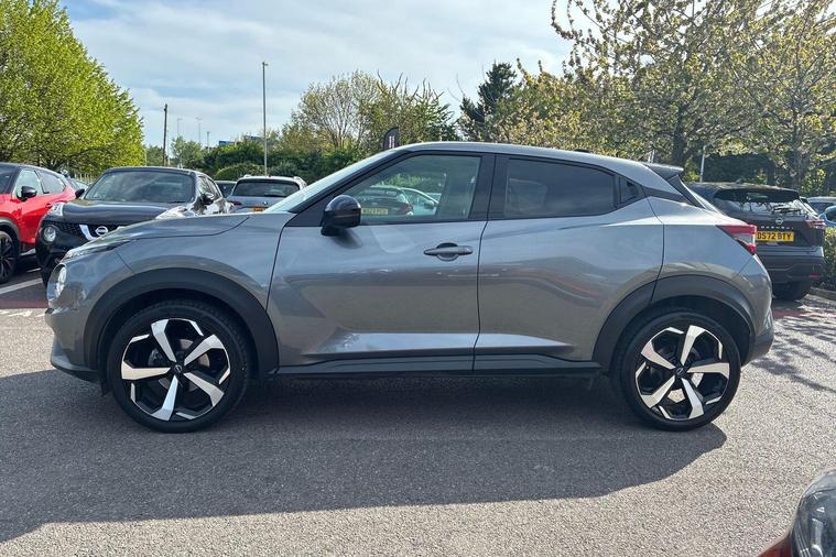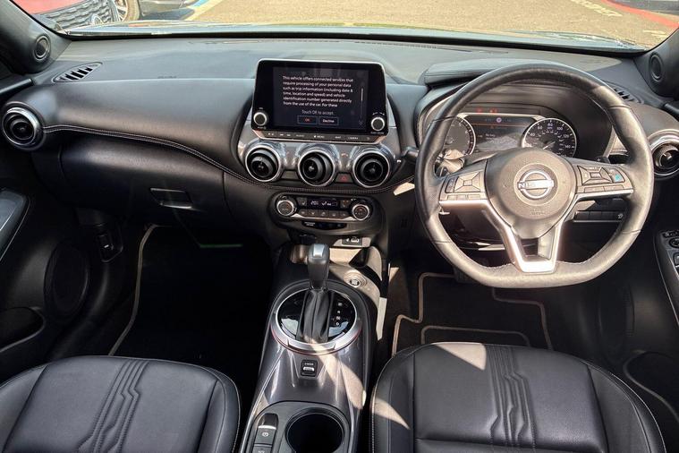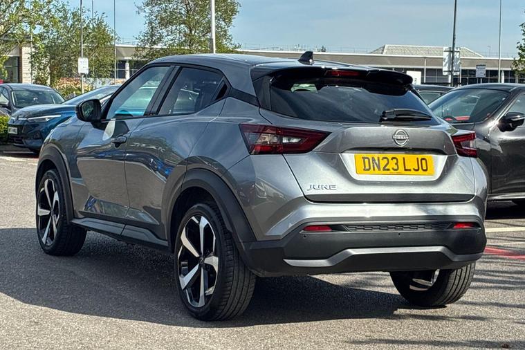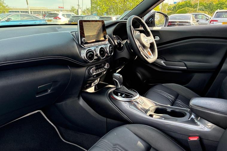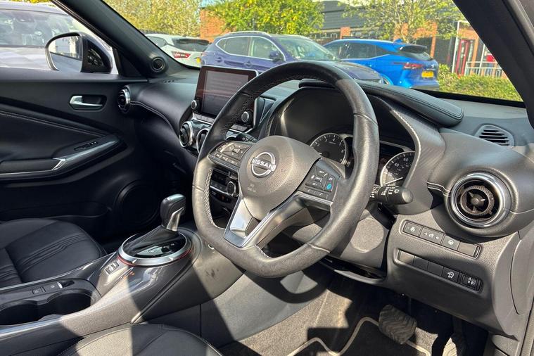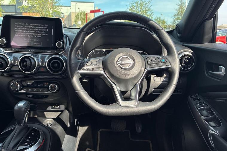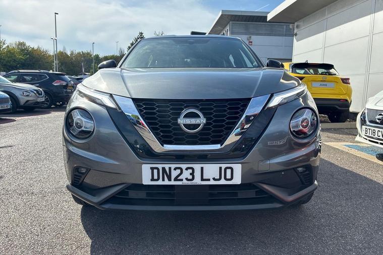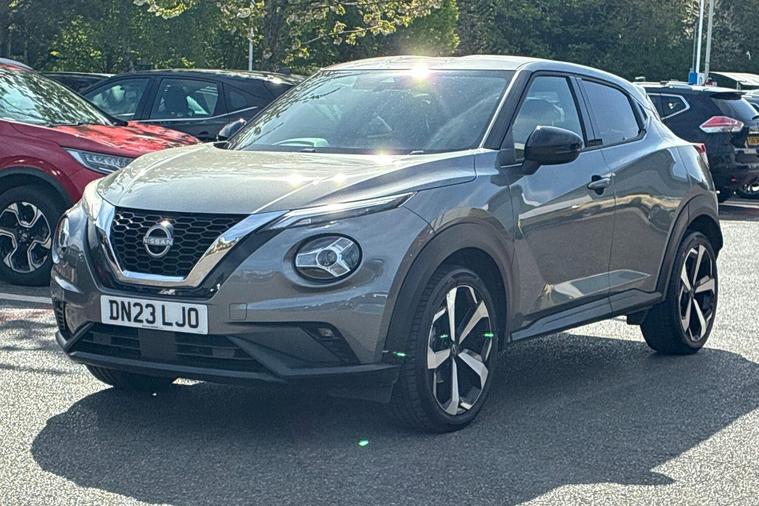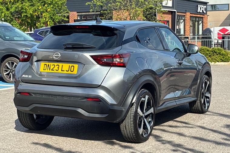 This 2023 Nissan Juke DIG-T Tekna is a Nissan manufacturer approved vehicle, offering peace of mind with its proven quality. This stylish Tekna trim model is powered by an efficient 1.0 litre petrol engine, meeting Euro 6 emission standards. It comes equipped with the convenience of Apple CarPlay and Google Android Auto, seamlessly integrating your smartphone for navigation and entertainment. Furthermore, the Intelligent Key system with Walk Away Lock and Approach Unlock functions provides effortless keyless entry and security.The Juke DIG-T Tekna stands out with its impressive fuel economy, achieving a highlight of 46 miles per gallon, which indicates it is more economical than many similar vehicles. Its low CO2 emissions also contribute to its appeal, suggesting a more environmentally conscious choice. This combination of advanced technology, efficient performance, and manufacturer approval makes the 2023 Nissan Juke DIG-T Tekna a compelling option..