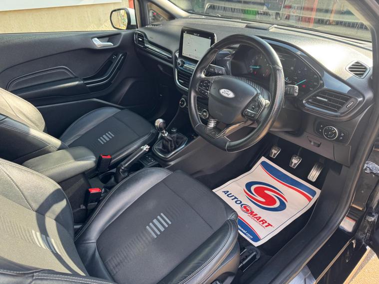 With an incredibly low mileage for its age, this 2018 Ford Fiesta T ST-Line X presents a superb ownership proposition. This Euro 6 compliant 1.0L petrol model boasts a clear vehicle history check and a full service history, with its last service completed on 2026-04-16 at 41301 miles. The MOT remains valid until April 2027, and the vehicle comes with a 3 month warranty for your peace of mind. Notable features include Electronic Automatic Temperature Control air conditioning, a NCAP Pack with automatic headlights, and the Ford Navigation System with Ford SYNC 3, offering seamless integration with Apple CarPlay and Android Auto.This Fiesta ST-Line X excels with its impressive fuel economy, achieving a remarkable 60 mpg, and its low CO2 emissions make it an environmentally conscious choice. The acceleration from 0-62mph in just 10.0 seconds indicates a responsive driving experience. These highlights demonstrate how this particular Ford Fiesta offers a superior combination of efficiency, performance, and modern technology compared to many other vehicles in its class..