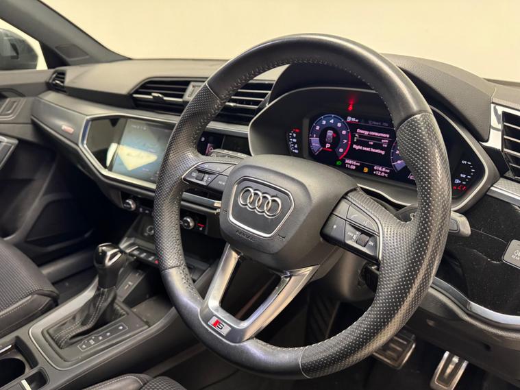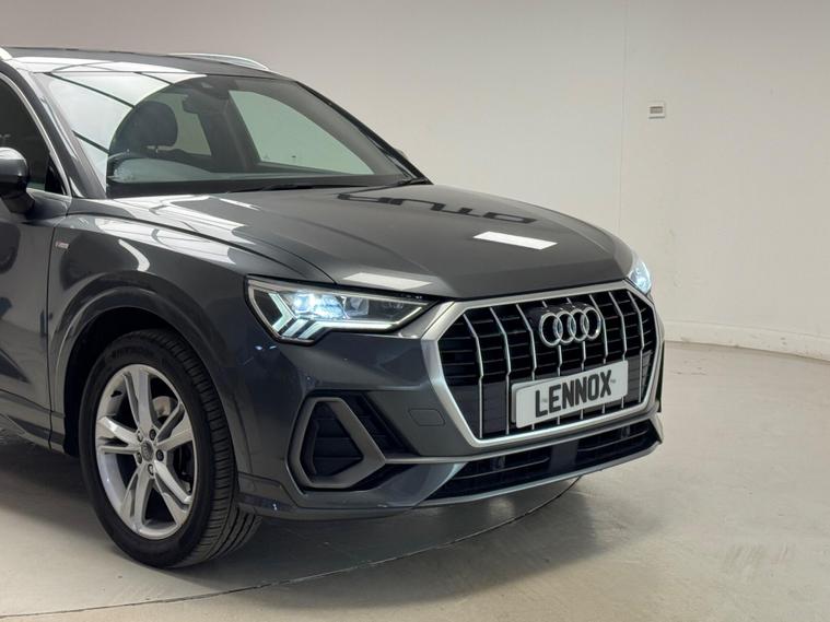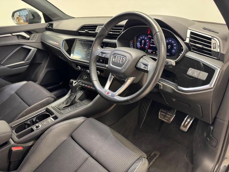 This 2019 Audi Q3 TFSI S line boasts exceptionally low mileage for its age, having covered just 36816 miles. This well appointed SUV features the sporty S line trim and is powered by an efficient 1.5 litre petrol engine, meeting Euro 6 emissions standards. Its sophisticated lighting system includes LED headlights with distinctive LED daytime running lights and dynamic rear indicators, complemented by automatic headlights that activate with light and rain sensors.The Q3 TFSI S line offers a comfortable and convenient driving experience, enhanced by dual zone electronic climate control to keep all occupants comfortable. For added safety and awareness, it is equipped with Audi Side Assist, providing blind spot assistance, and a Bluetooth interface for seamless connectivity. This particular model stands out with its low CO2 emissions and a brisk 0 to 62mph acceleration time of 9.4 seconds, demonstrating its blend of performance and efficiency compared to other vehicles in its class..