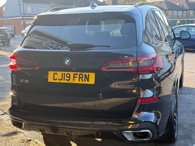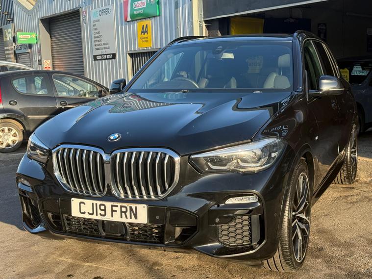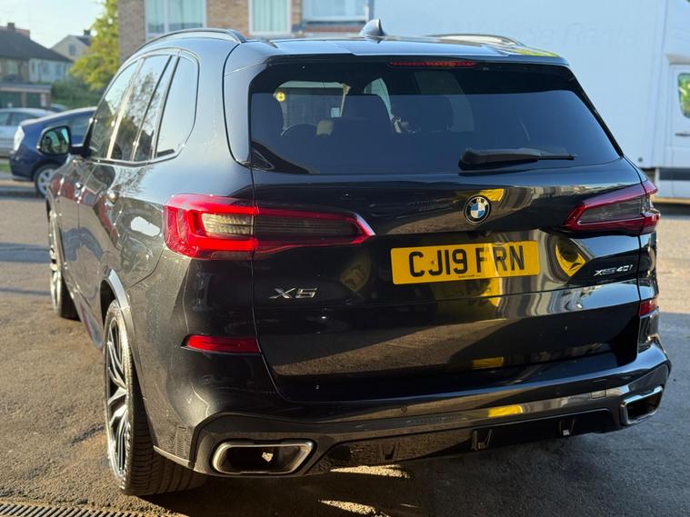 This 2019 BMW X5 40i M Sport is presented with a clear vehicle history check and will be supplied with a 12 month MOT for your peace of mind. This impressive four wheel drive model features a powerful 3.0 litre petrol engine, meeting Euro 6 emissions standards. Its M Sport trim enhances its sporty appeal, complemented by striking 22 inch M Light Double Spoke Style 742 M Bicolour alloy wheels with mixed tyres. Inside, the cabin boasts a luxurious feel with Glass Application in Crafted Clarity for interior elements and BMW Individual Piano Black interior trim, all part of the M Sport Plus Package. Parking is made effortless with Front and Rear Park Distance Control, including front and rear sensors.The BMW X5 40i M Sport offers a compelling blend of performance and practicality. Its acceleration is noteworthy, achieving 0 to 62 miles per hour in just 5.5 seconds, demonstrating its dynamic capabilities. This vehicle also benefits from a substantial towing weight of 2500 kg, making it a versatile choice for various needs. Furthermore, its generous boot space provides ample room for luggage or shopping, while its low insurance group rating offers an added advantage for potential owners..
